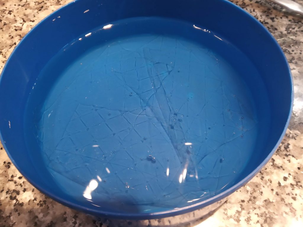 Poner en un bol con agua fría, las laminas de gelatinas, para hidratarlas.