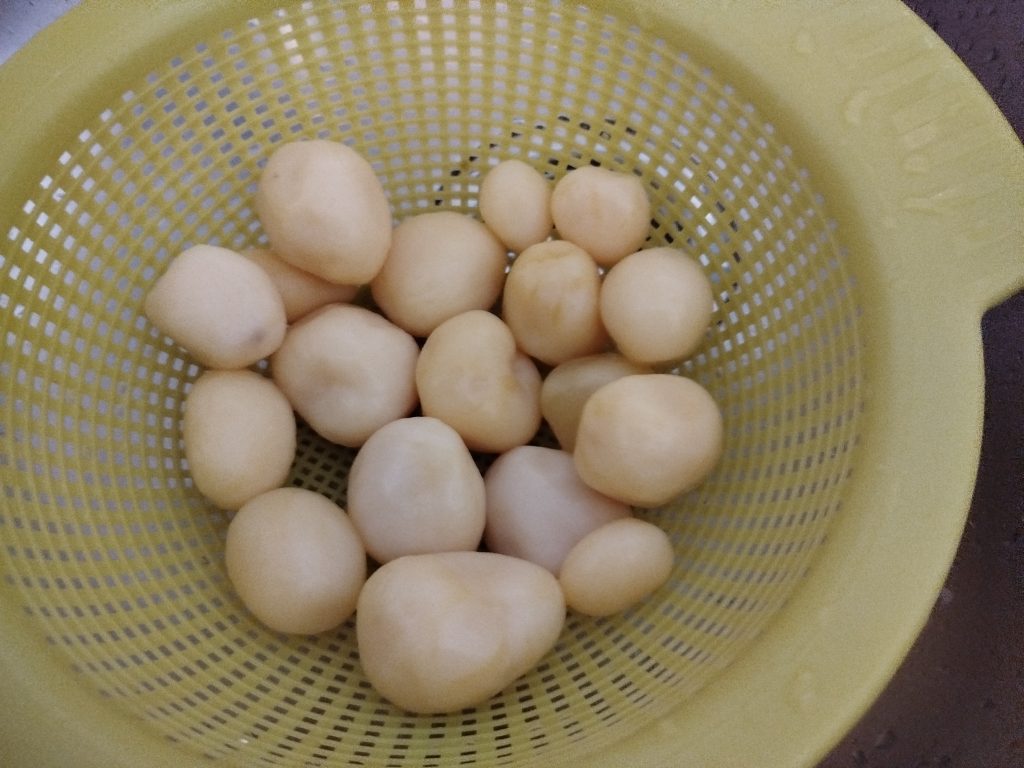 Echar las papas cocidas en un escurridor, y lavar muy bien bajo el grifo.