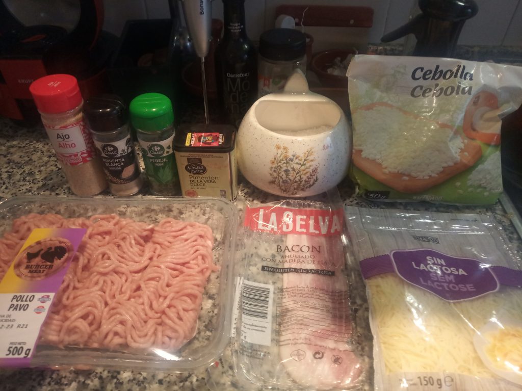 - 500 g carne picada de pollo, pavo o ternera, cerdo