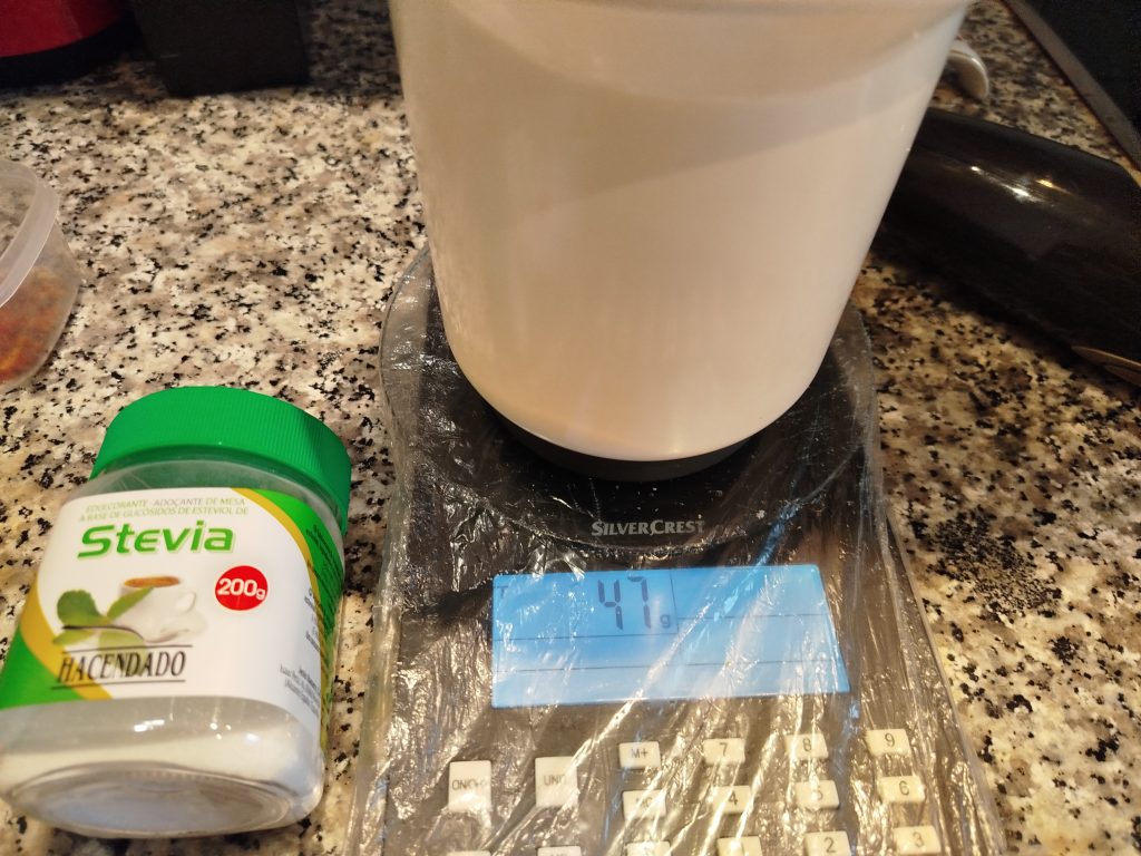 - 3 cucharadas de azúcar o la 1/2 de Stevia granulada.