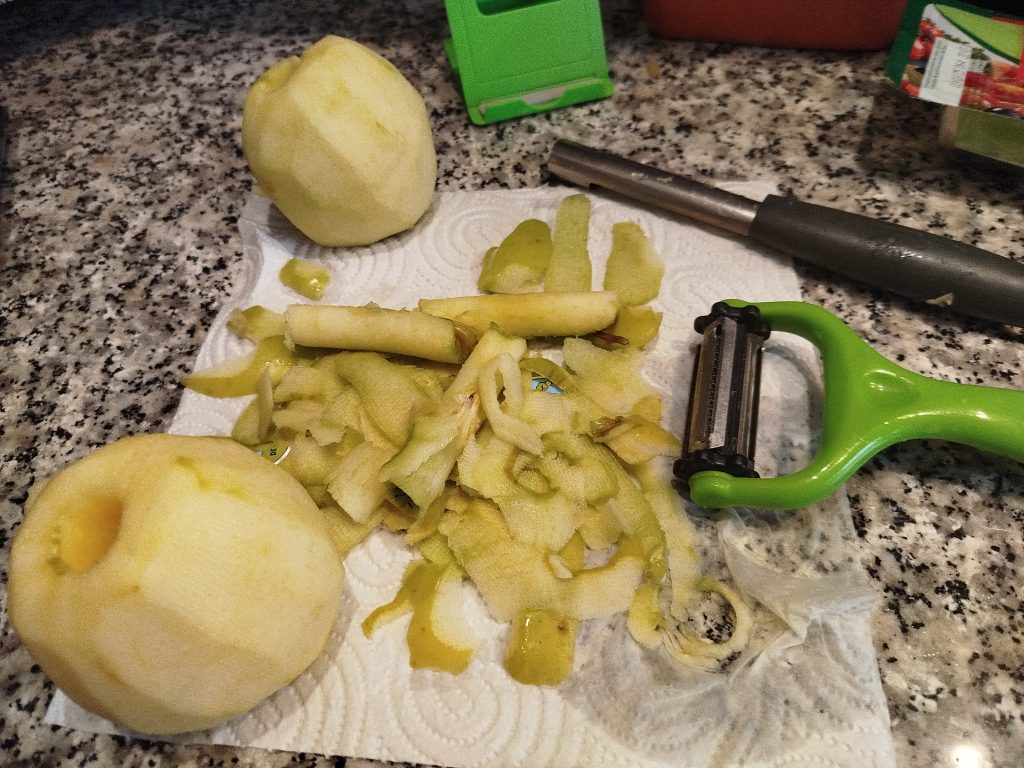 Pela las manzanas y puedes rallarlas o pasar por la picadora, como hice yo, si hace falta de una en una.