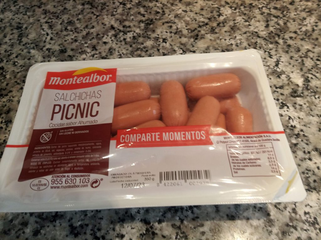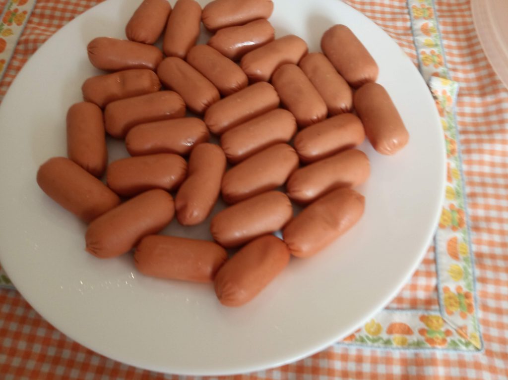 Se puede acompañar con mini salchichas de pollo, cocidas y ahumadas.
