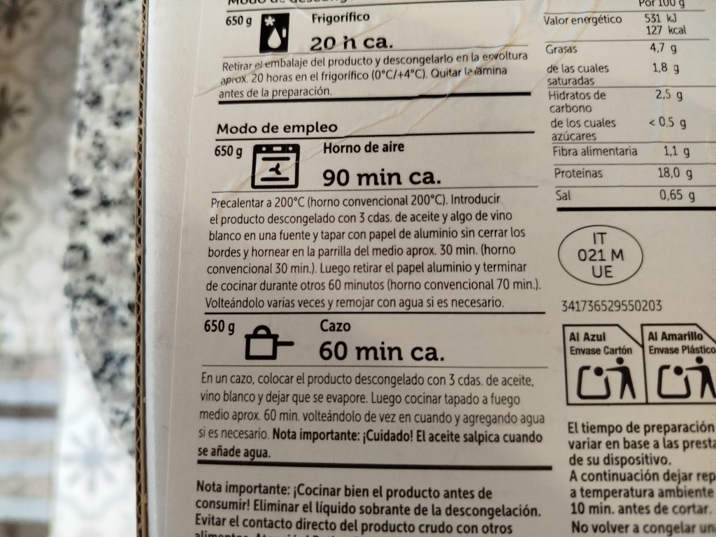 Descongelar el día anterior el pavo relleno en el frigorífico.