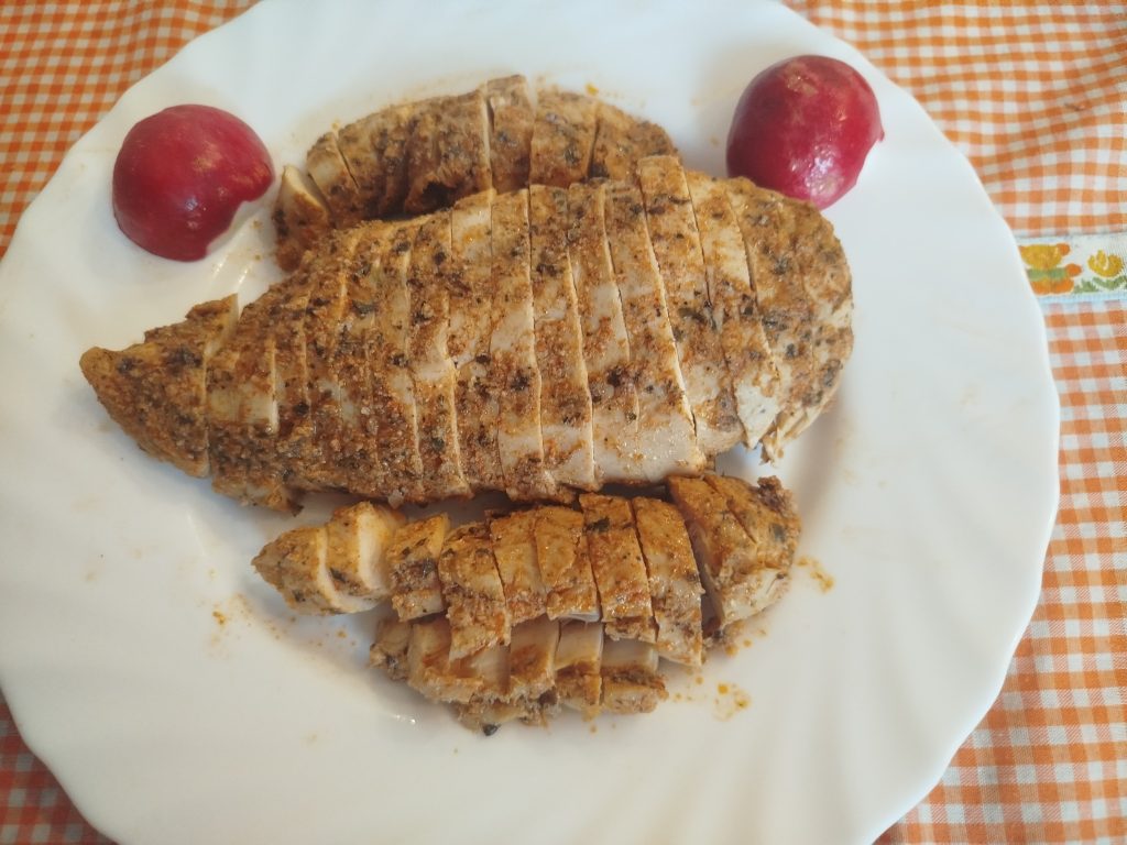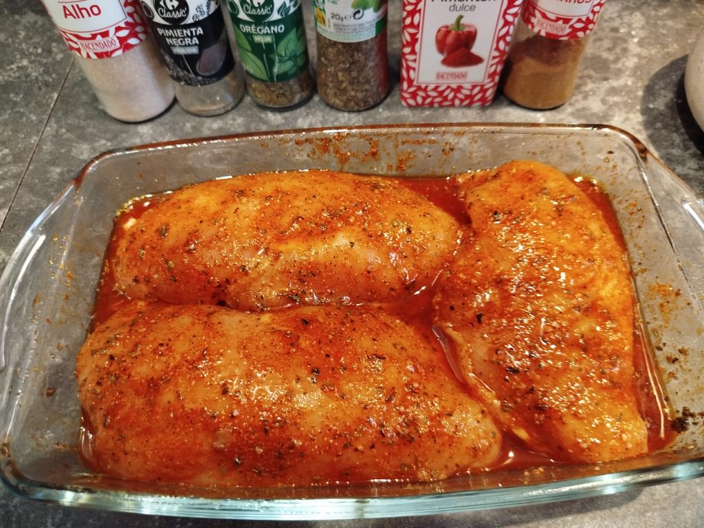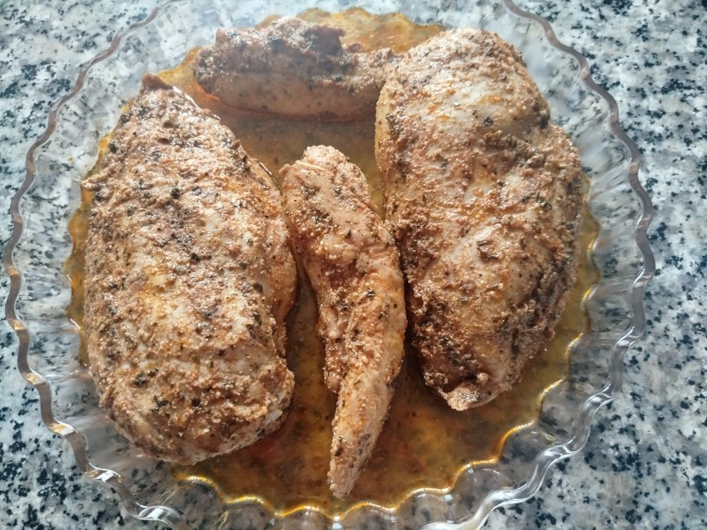 Pechugas de pollo marinada y luego braseadas en el horno o en la Airfryer