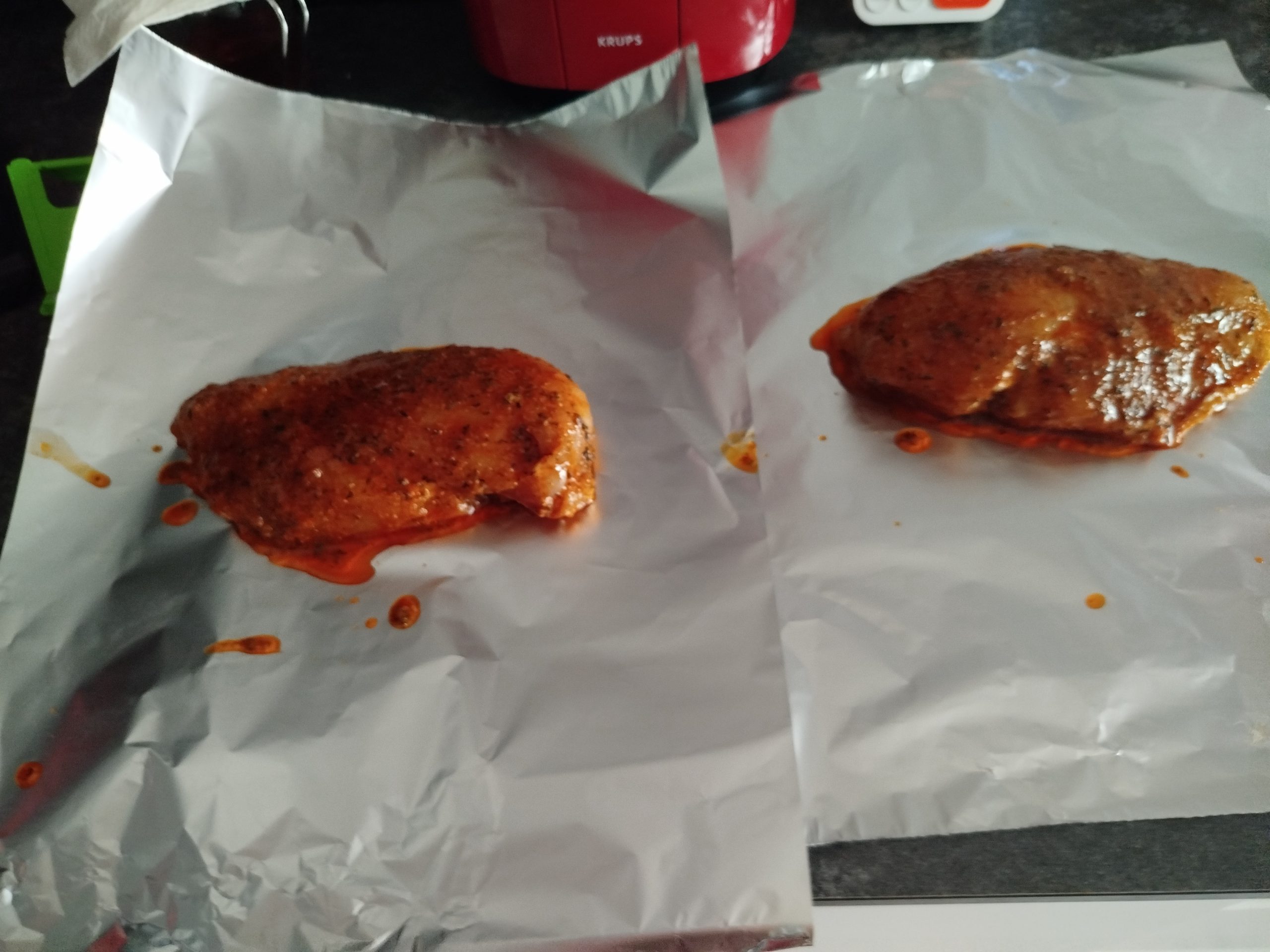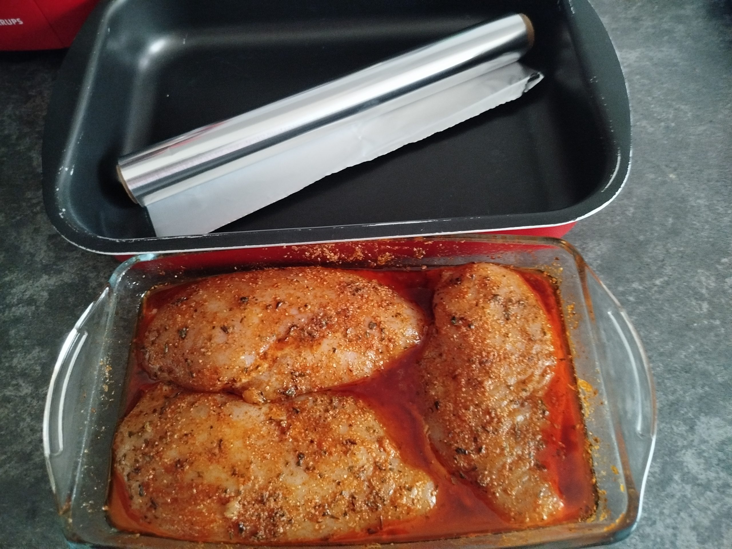 Pechugas de pollo marinada y luego braseadas en el horno o en la Airfryer