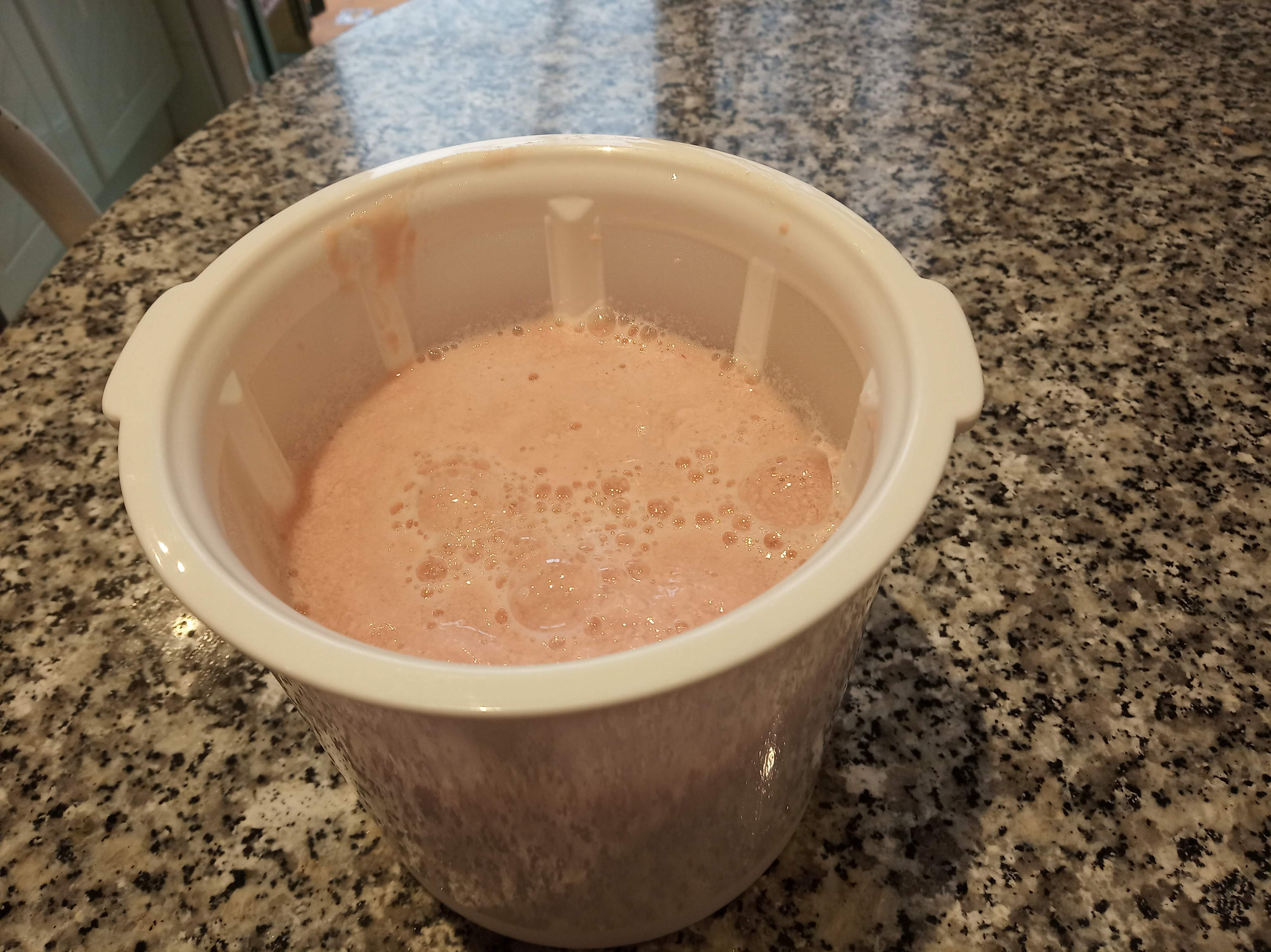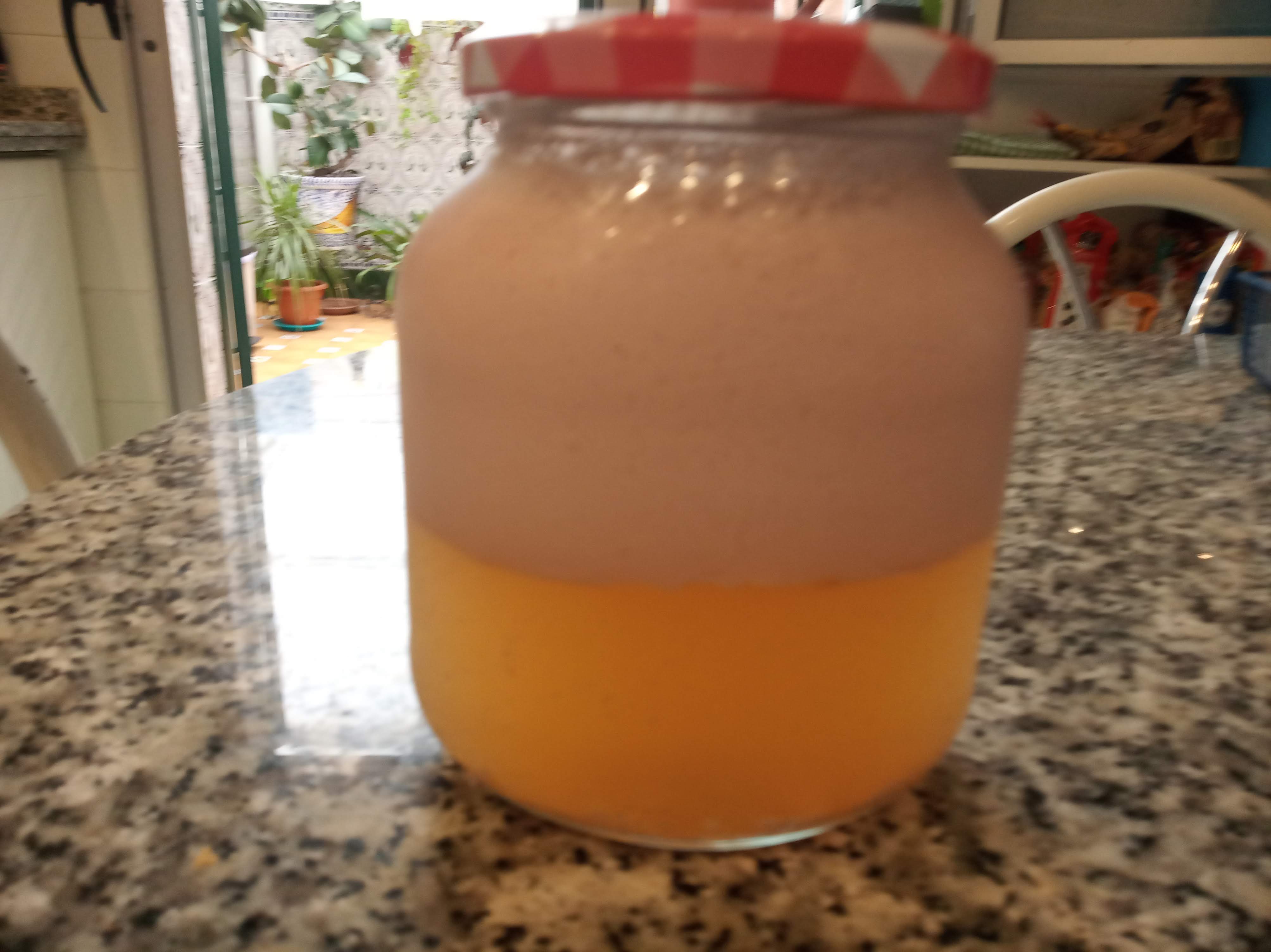 Pasado ese tiempo, sacar el bote de la yogurtera, y dejar enfriar una hora, se vera, que se separa el liquido en el fondo.