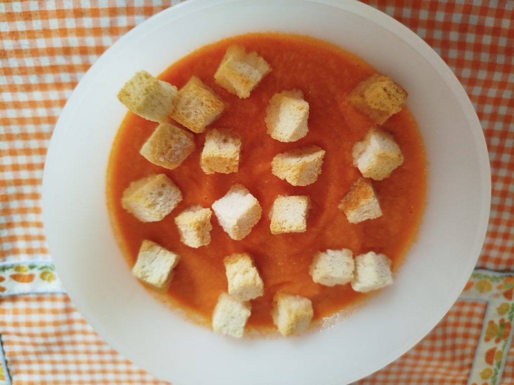 Esta vez las acompañe de Salmorejo de tomate y manzana hecho en la Jarra de la batidora.