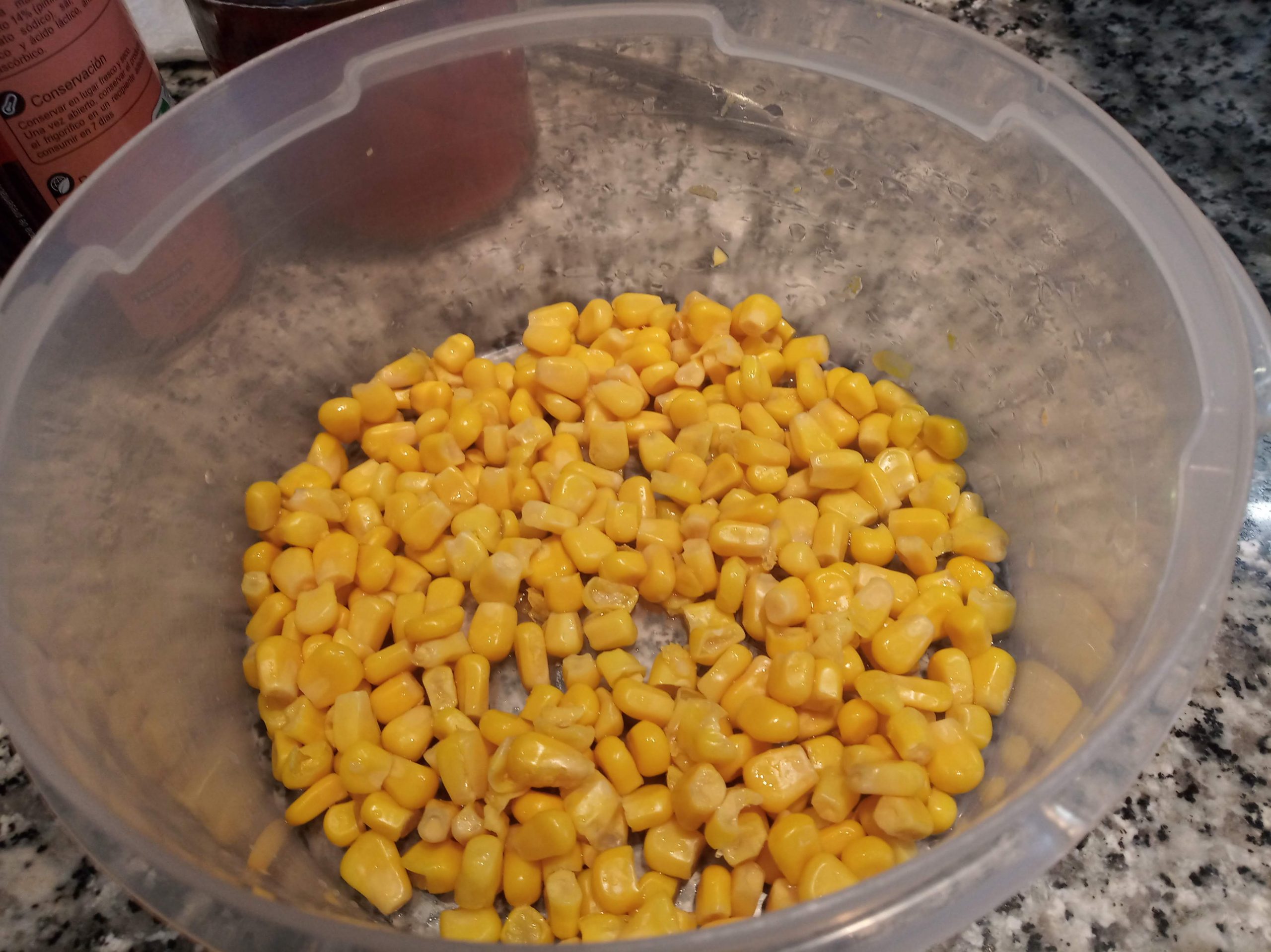 Le añadimos el maíz escurrido, reservando también algunos para emplatar.