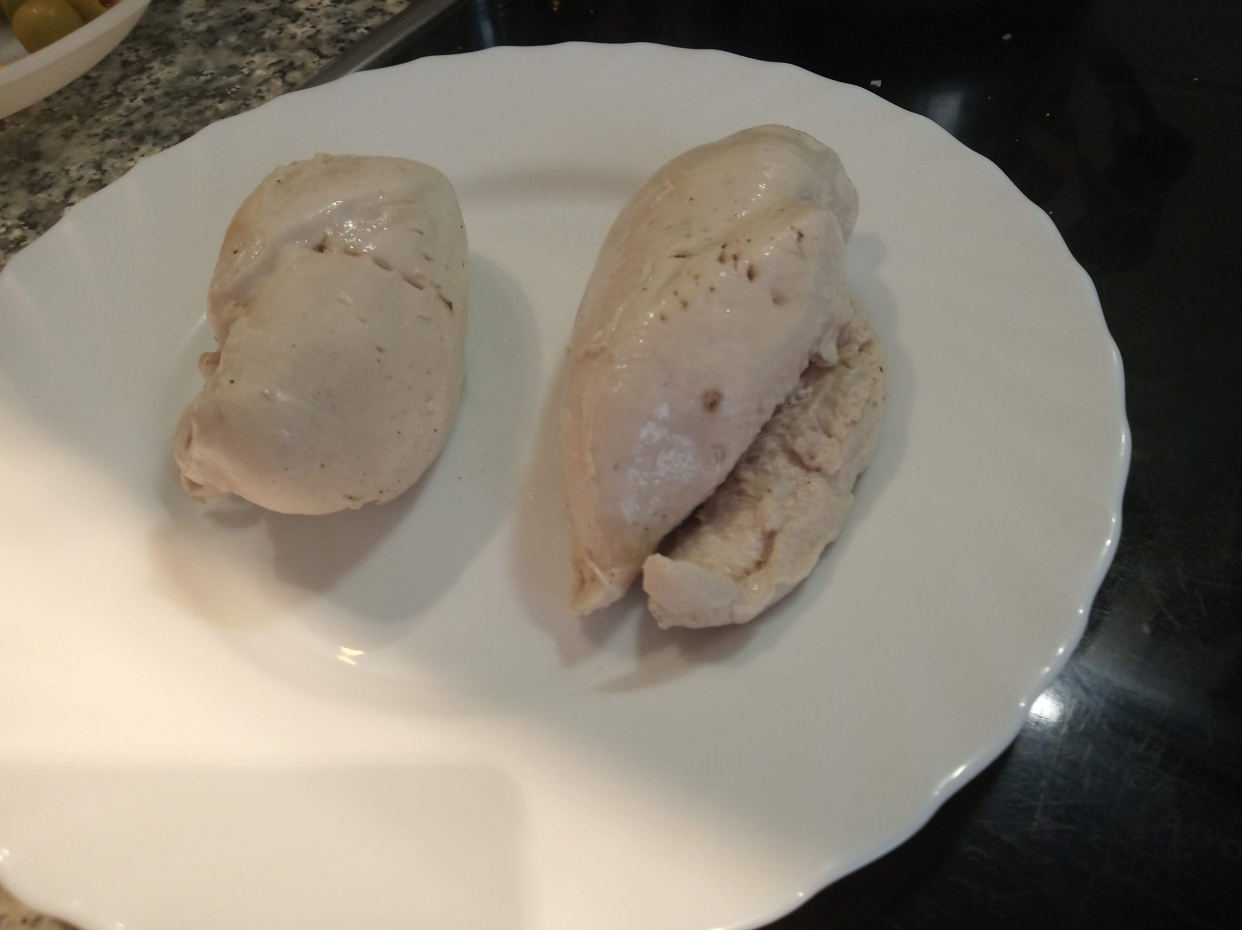 - 1/2 pechuga de pollo o 1 pechuga de pollo chica