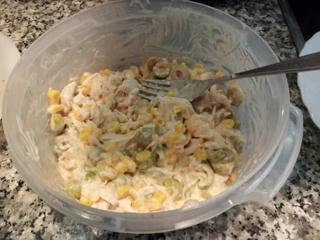 Por último, le echamos la mayonesa, y mezclamos todo muy bien, si es necesario, echar más mayonesa y sal, para dejar a tu gusto y bien ligado todo.