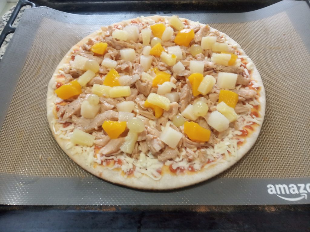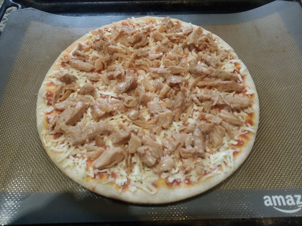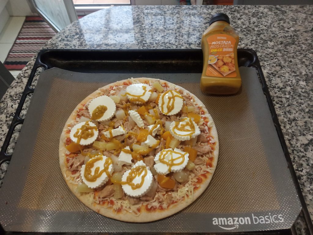 Meter la bandeja en el horno, con calor arriba y abajo, a 200ºC durante unos 11 minutos. Ver que no se queme la masa, cada horno es distinto.