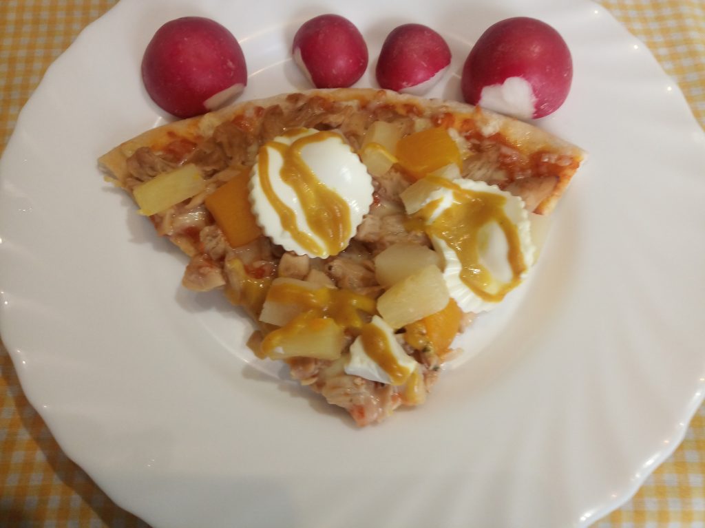 Cortar el queso fresco en rodajas, y repartirla en la pizza, si quieres puedes trocear las rodajas y repartirlo.