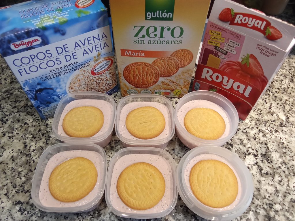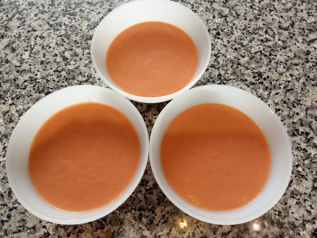 😊Esta vez lo acompañe de Sopa o crema fría de garbanzos y de postre Tarta de queso (individual) con Copos de avena hidratados.