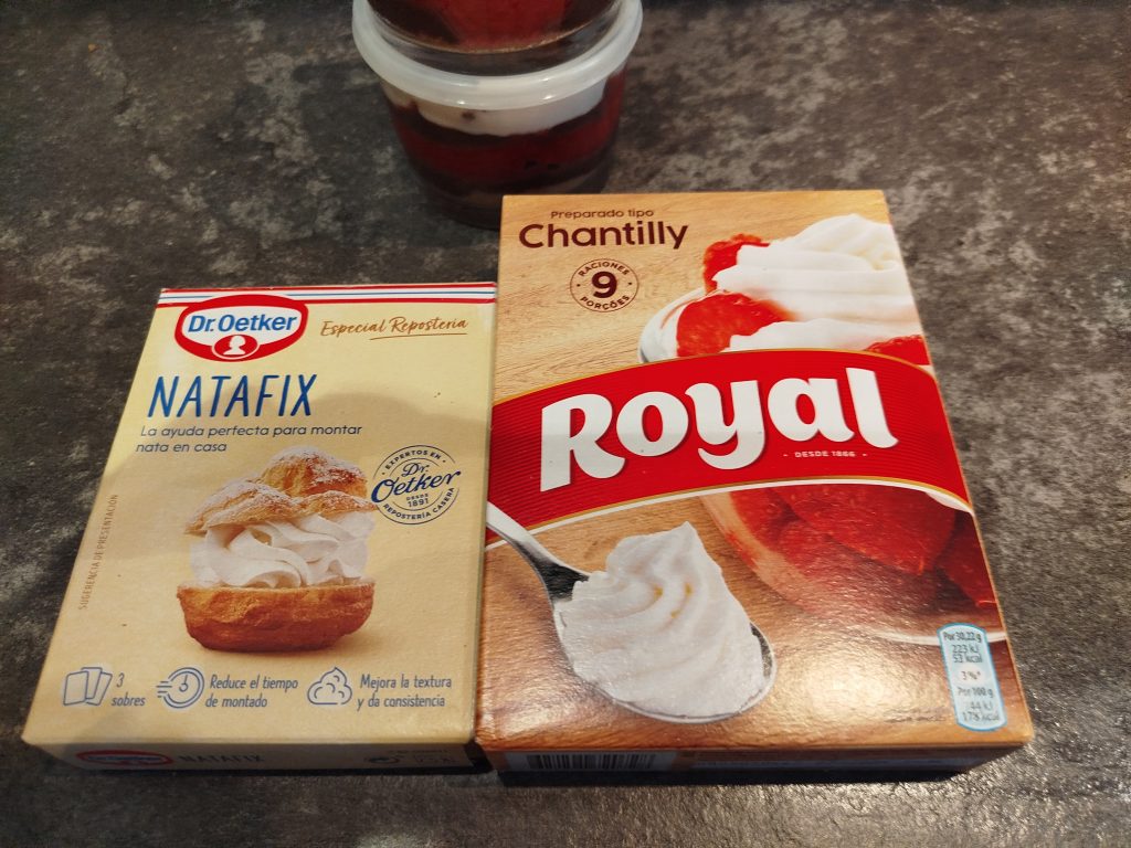 Si quieres nata más firme y no chantilly, puedes utilizar, Natafix de Dr.Oetker, con crema de soja, según indica el paquete.