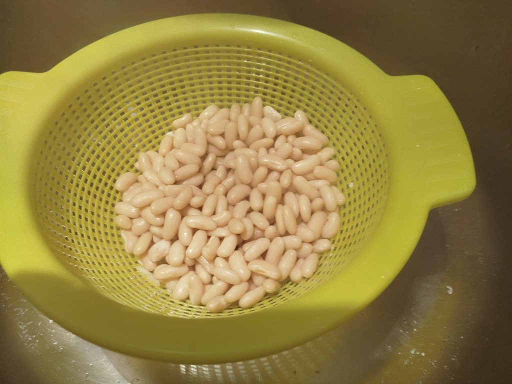 En la olla, echamos las alubias con su agua, dejar cocer, hasta que salga toda la espuma. De esta forma te quitas de tener que espumar. Lo echamos en un escurridor, y lavar muy bien bajo el grifo, y la olla también.