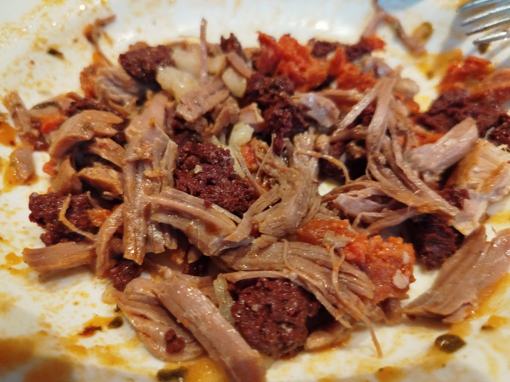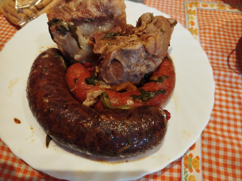 - 1 trozo de carne, tocino, morcilla y chorizo