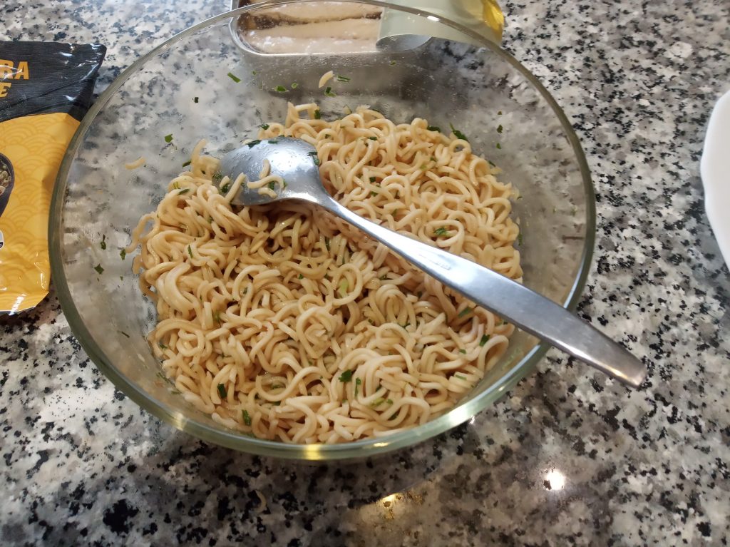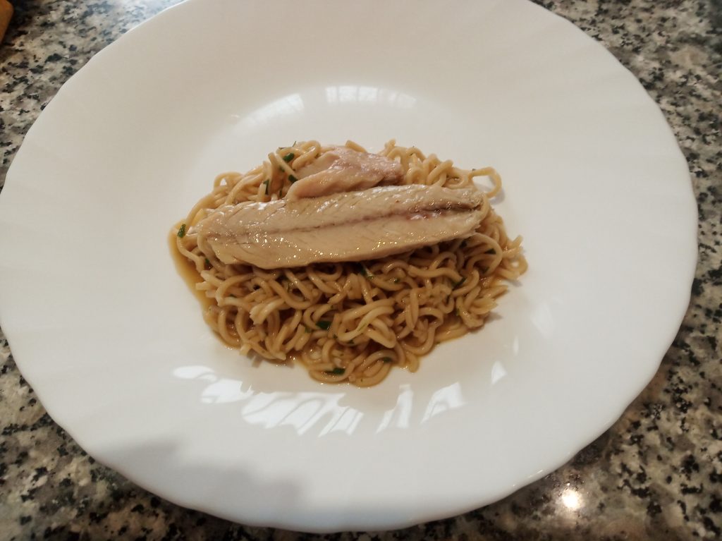 Tengo otra receta con sabor a pollo de Maggi. Pasta Oriental sabor pollo con caballa al Microondas o en olla