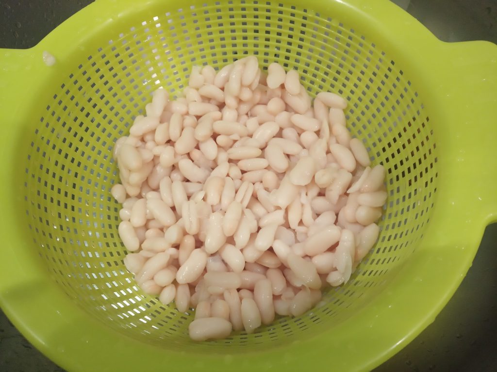 Echar las alubias en un escurridor, y lavar muy bien bajo el grifo.