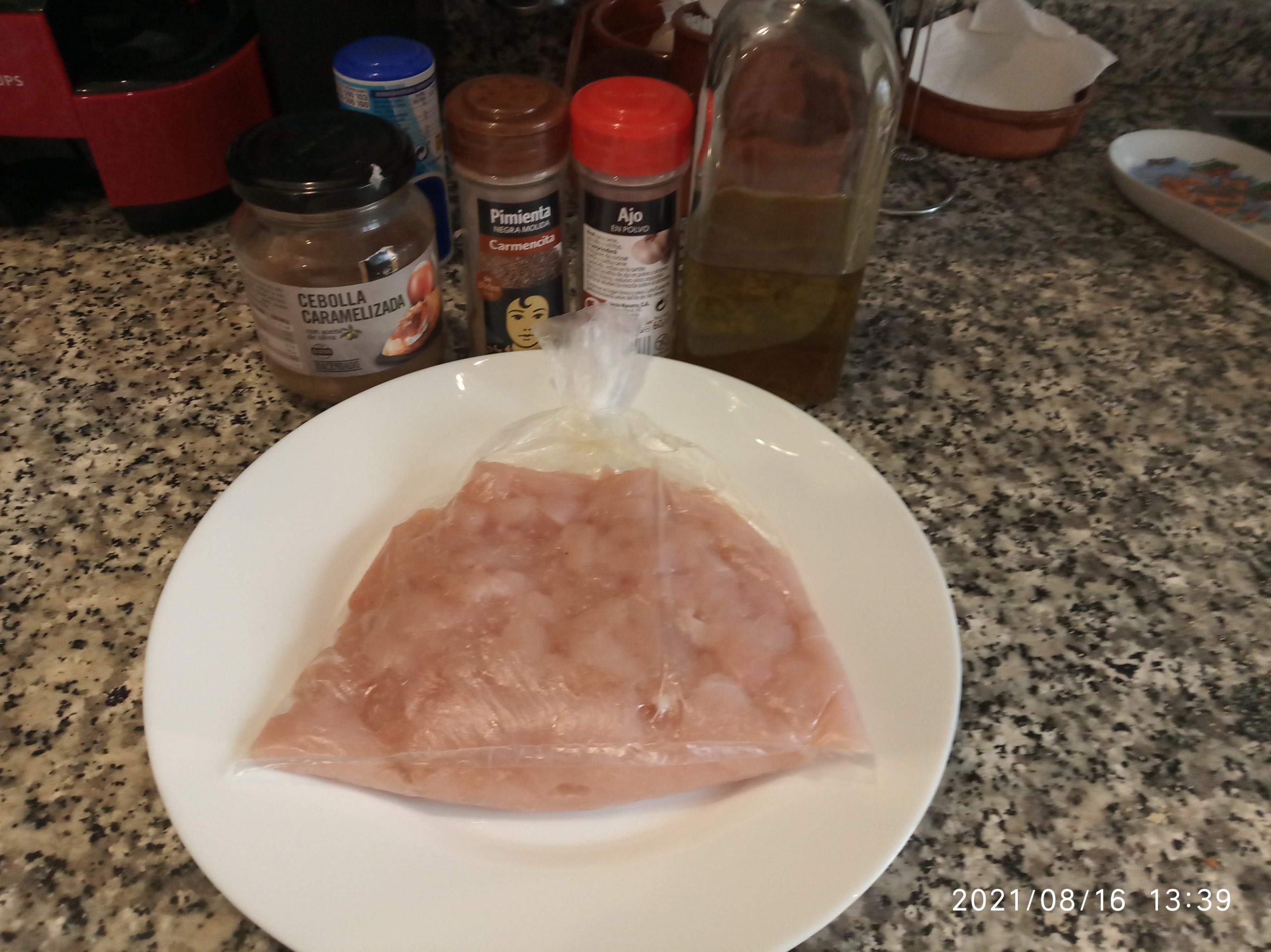 Limpia y trocea la pechuga de pollo en trocitos pequeños.