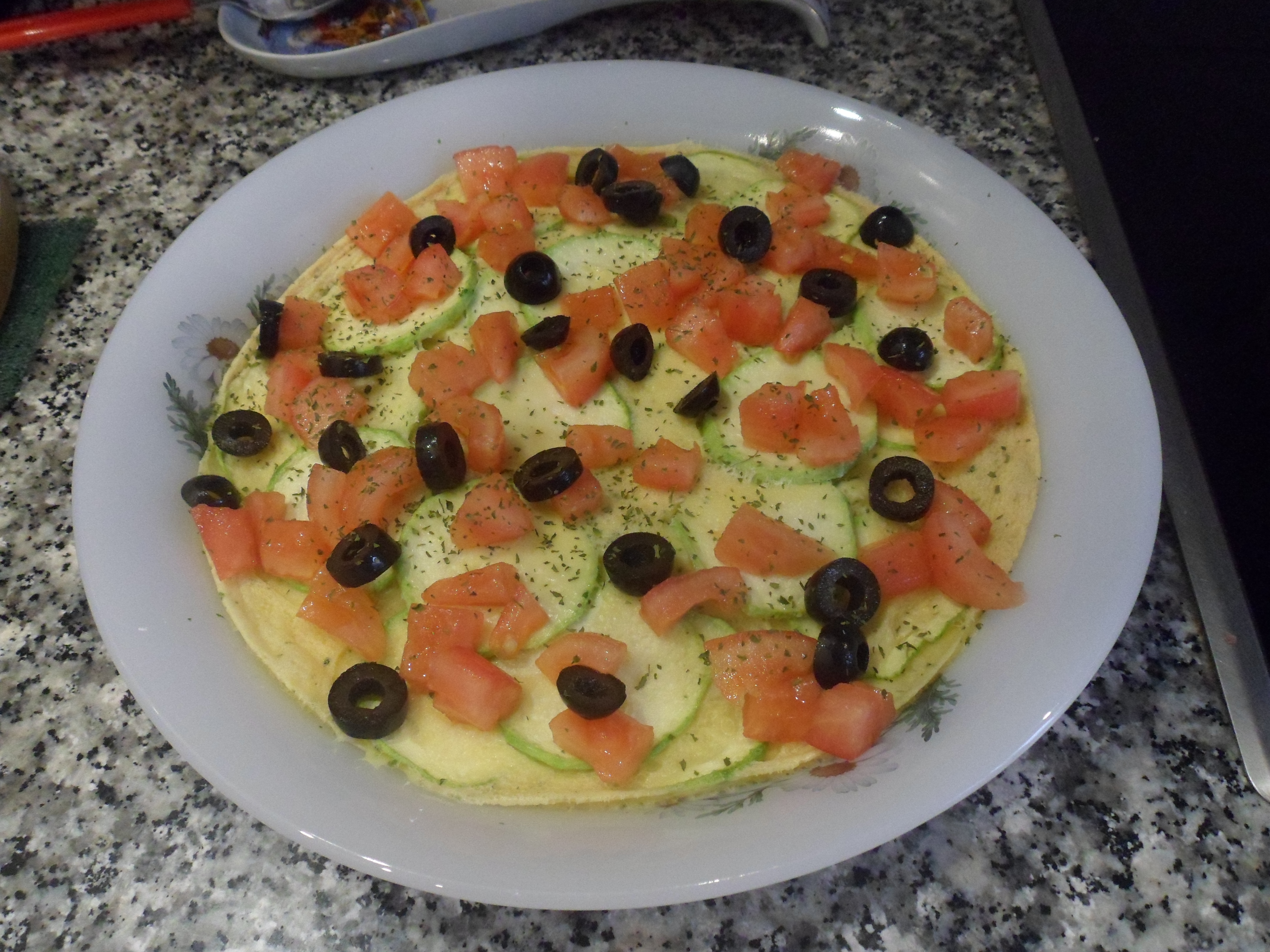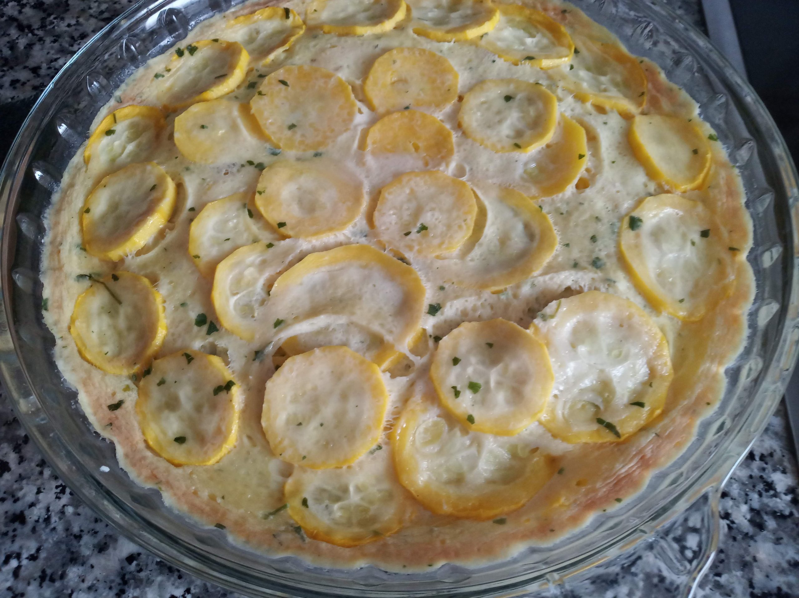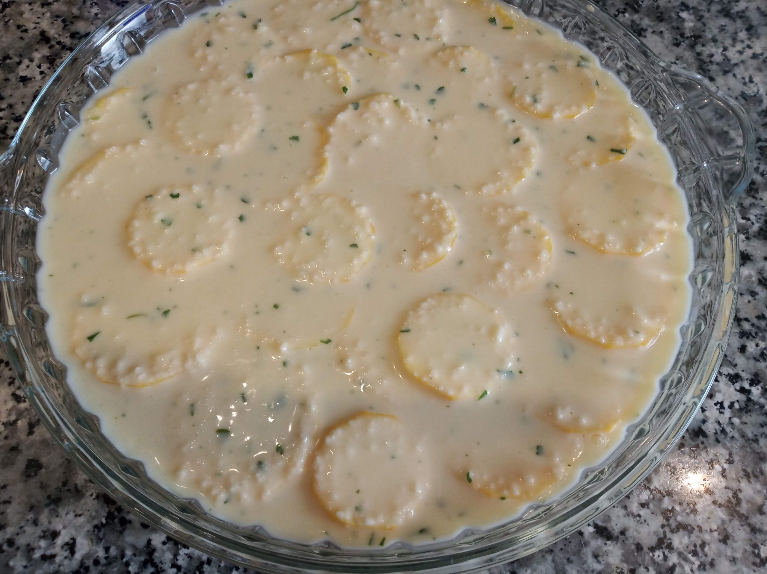 Colocar en una fuente los calabacines laminados y vertemos la preparación encima.