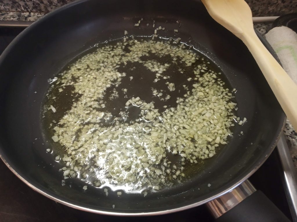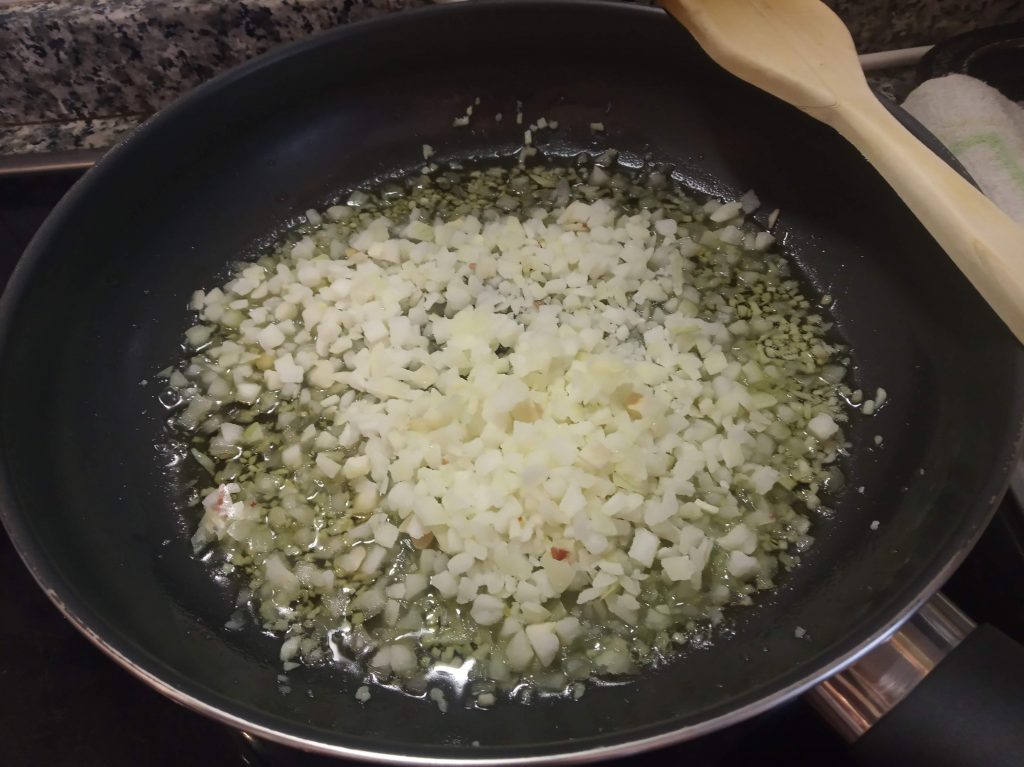 Pasado otros 5 minutos añadir el vino blanco, y dejar evaporar el alcohol unos 8 minutos.
