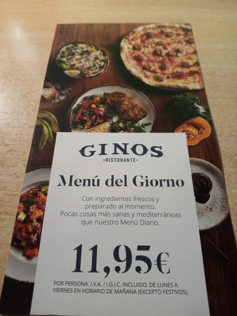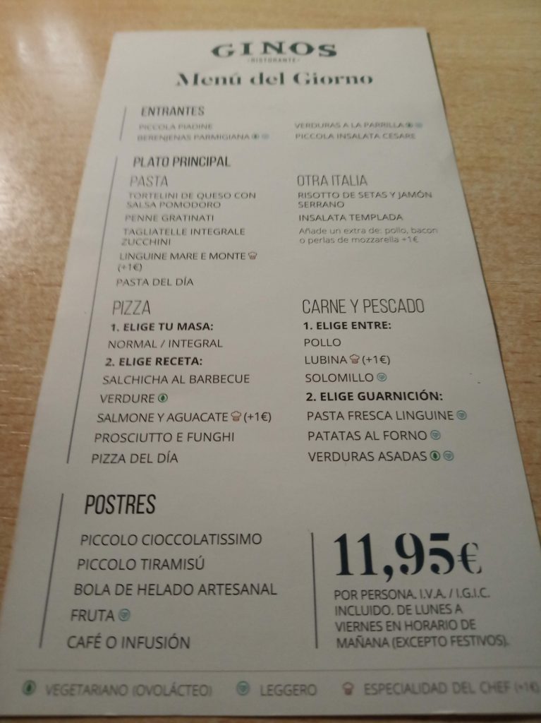 Antes de irnos comimos en el Restaurante Gino Lagoh, tienen 2 tipos de menú y a la carta.