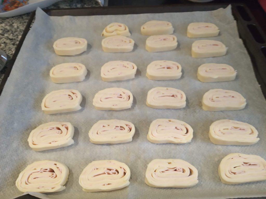 Pasado ese tiempo, sacar el rollo del congelador, y cortar rodajitas de 1 dedo de grosor, e ir colocándola sobre la bandeja de horno, que abras colocado antes el papel de hornear