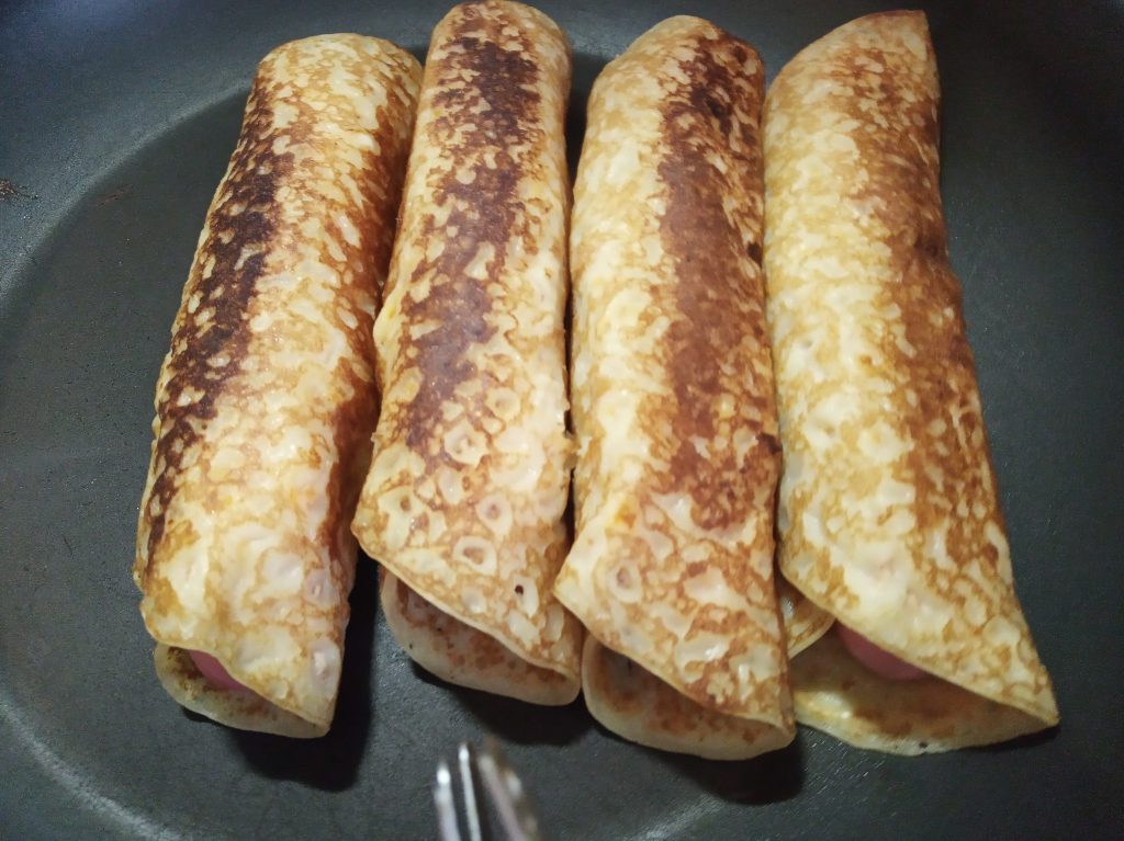 Cuando las tengas todas enrolladas, ponla en una sarten grande, y las calientas por todos los lados, yo las hice de 4 en 4.