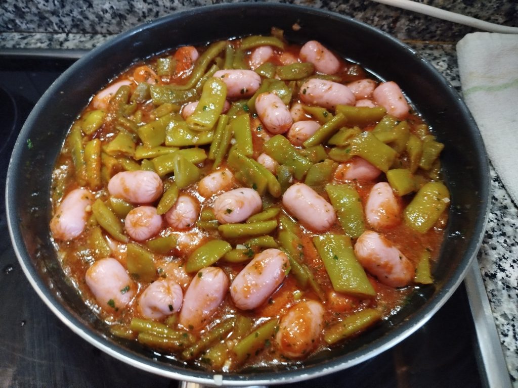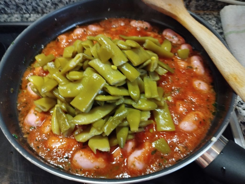 Luego añadir las judías verdes, mezclar todo muy bien.