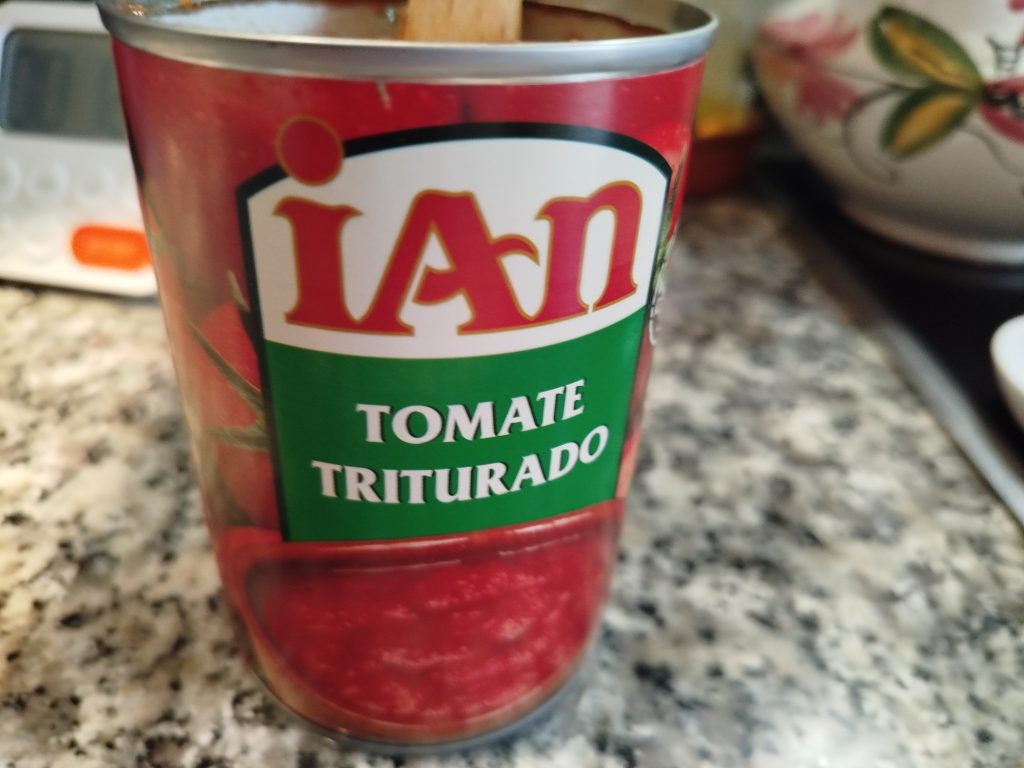 Añadir el tomate triturado, con un poco de azúcar o bicarbonato para la acidez, y un poco de sal, dejar cocer a fuego mínimo y tapado, durante 20 minutos.