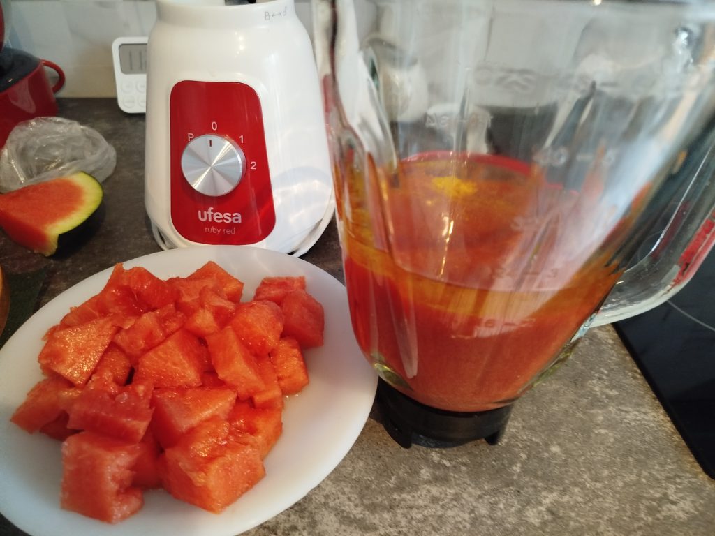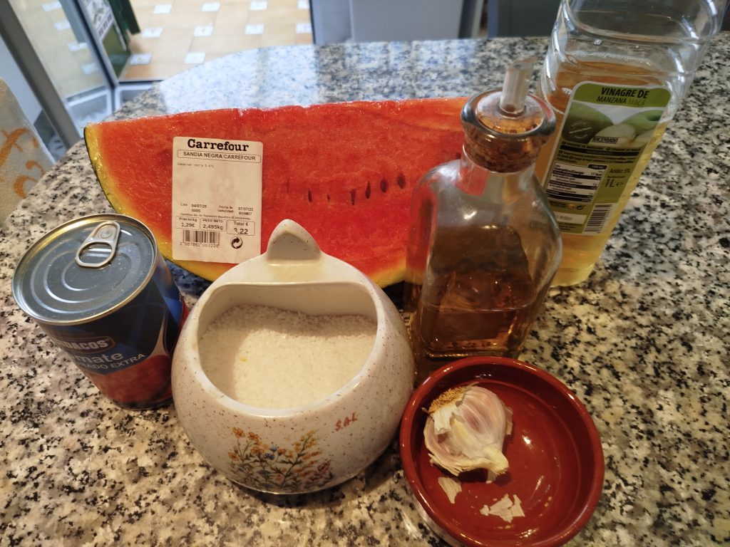📜Receta tomada de otra mía, que tengo en el blog del año 2016, Salmorejo de sandía y tomate