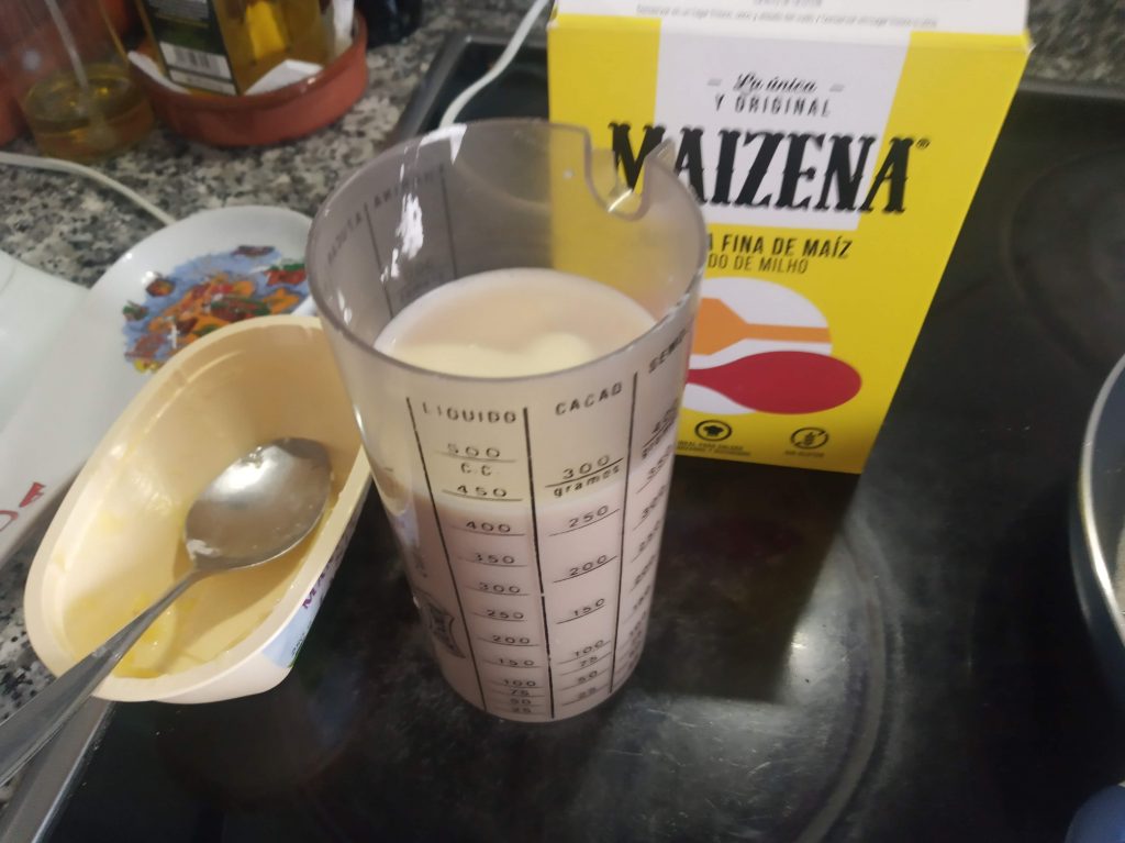 Hacemos la bechamel, en mi caso al ser de Maicena, la disuelvo en la leche fría.