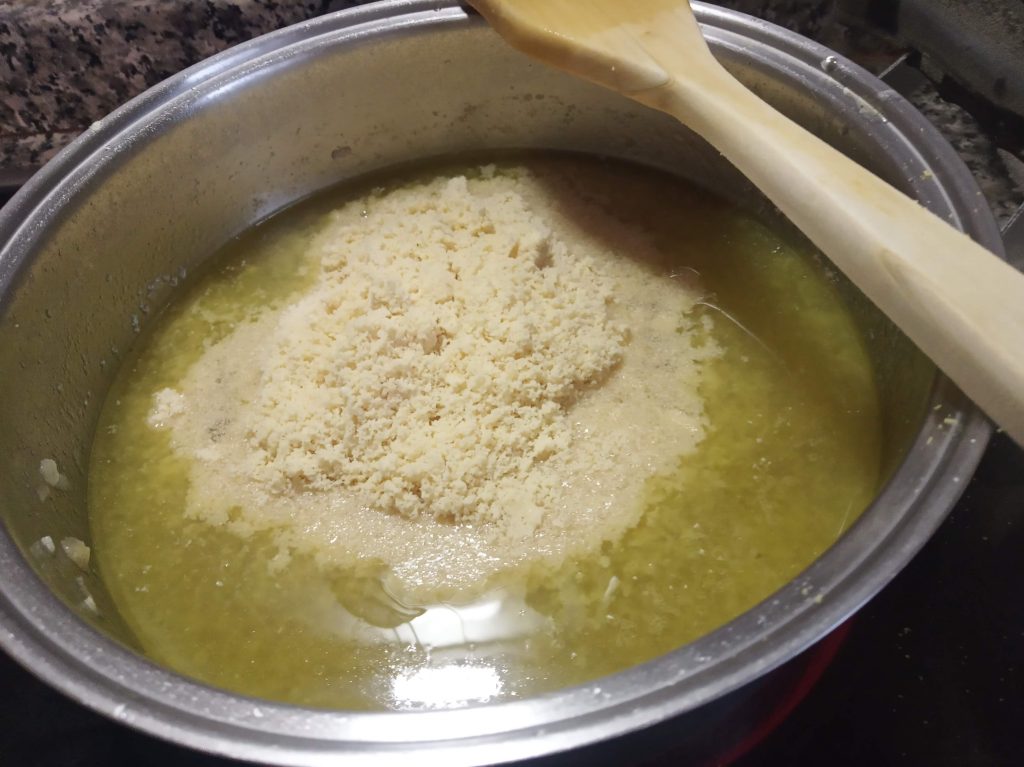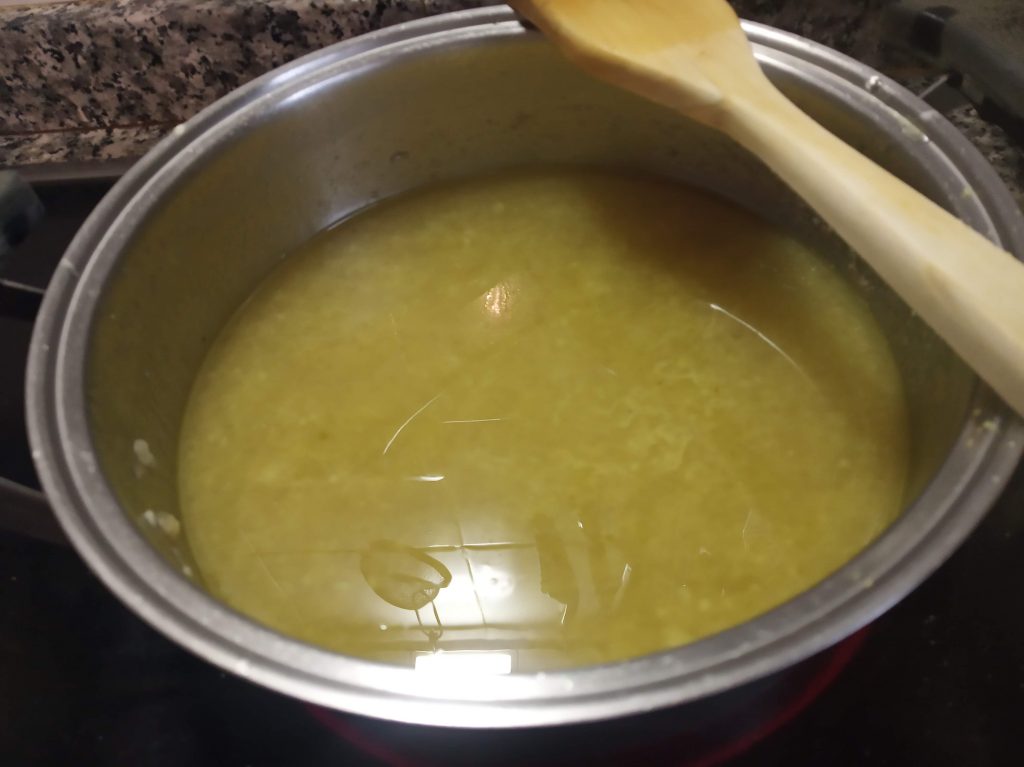 Le echamos el caldo de verdura o el agua y la pastilla desmenuzada.