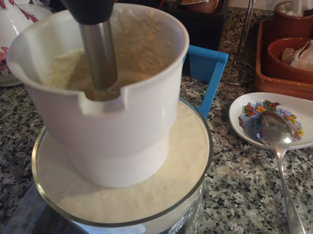 Lo pasamos al vaso de la minipimer, y batimos todos junto.