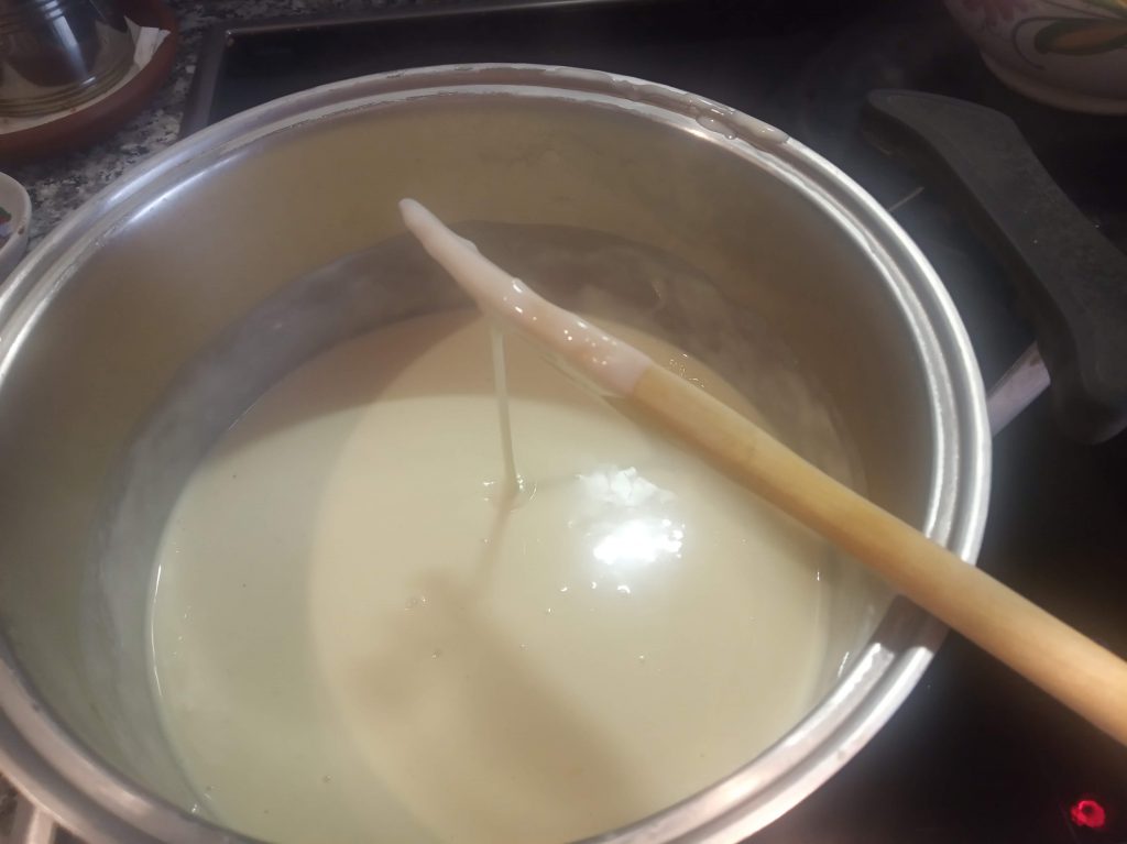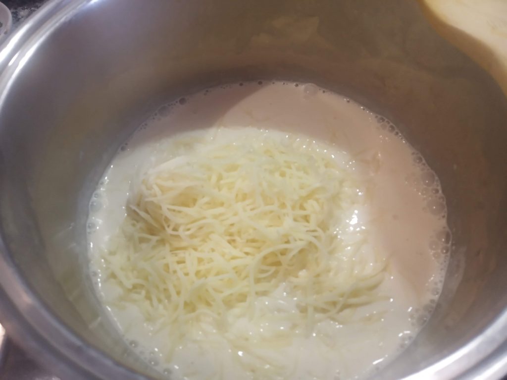 Echar 1vaso de leche y nata para cocinar en la cacerola, a fuego bajo, cuando empiece a hervir añadir el queso y remover hasta que se ligue todo muy bien, añadir sal al gusto y cuando vuelva a hervir, mantener al calor sin dejar de remover de vez en cuando, si la quieres más liquida, puedes echarle un poco más de leche.