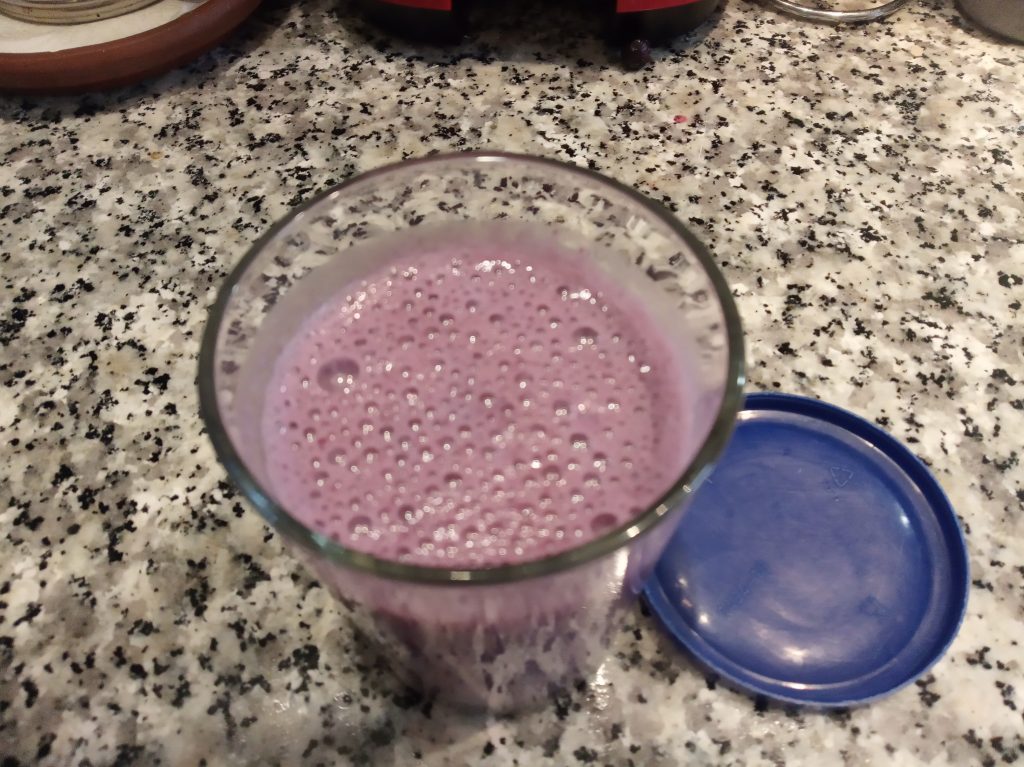 📜📷Receta y foto del 16/09/2024 Con fruta variada congelada. Como es para mi, los estoy congelando, para que no fermente, y saco un vaso cada día al frigorífico.