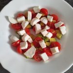 Ensalada de tomate cherry con aguacate y mozzarella a tu gusto