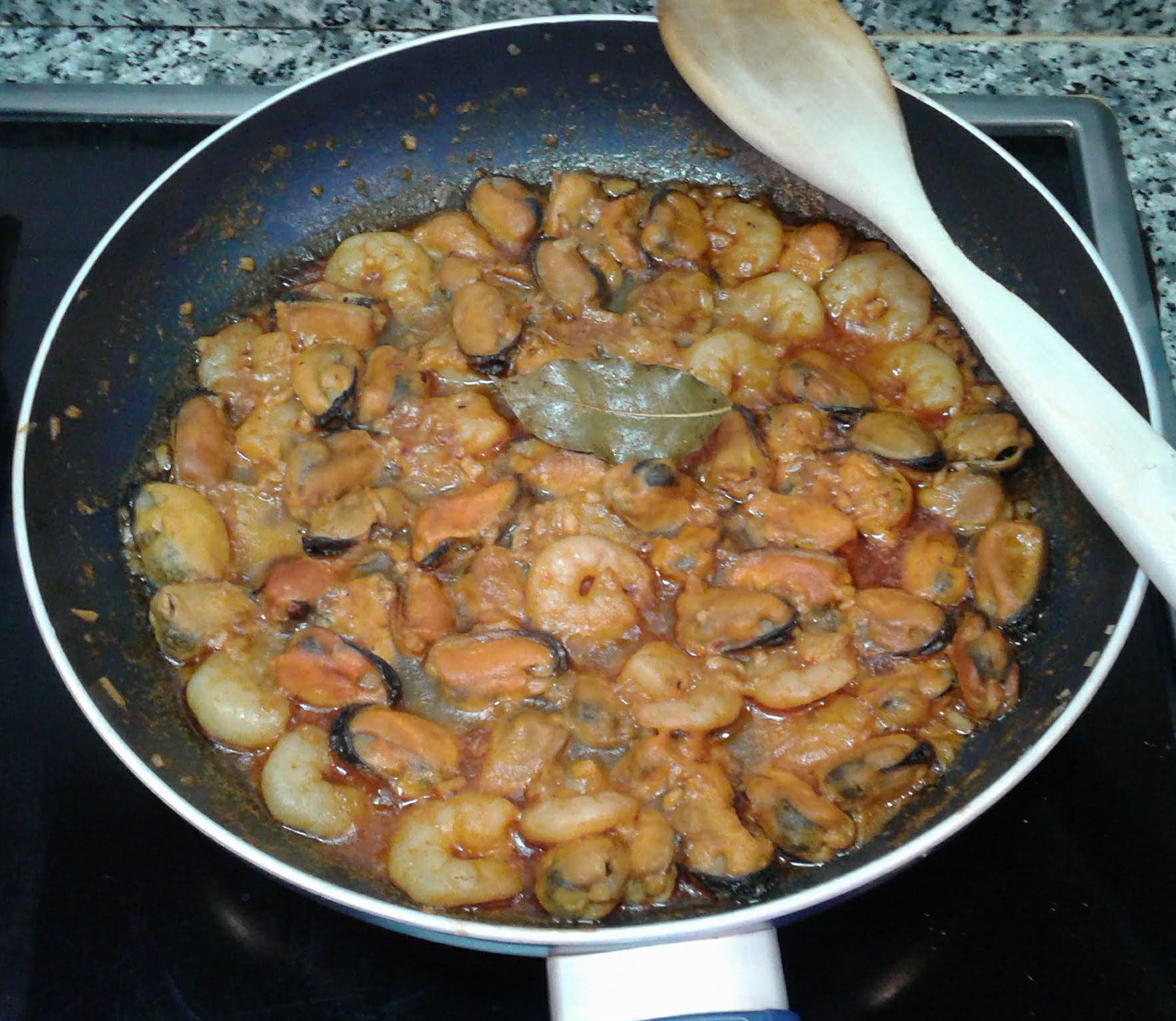 Cazuela de Mejillones y GambasIngredientes para 4 personas