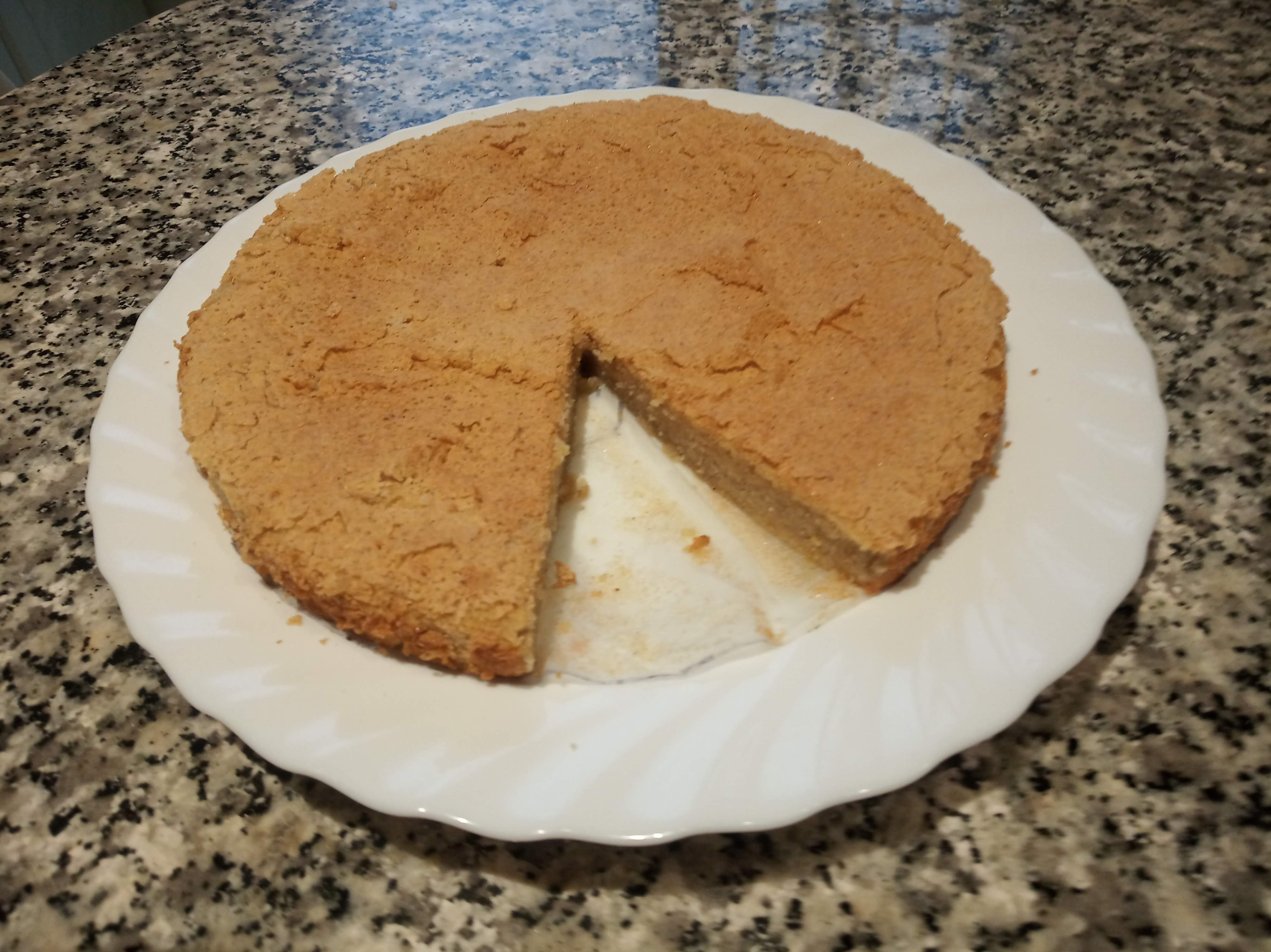 Yo he hecho Tarta de Almendras, con la ½ de ingredientes en un molde más chico, y sin azúcar glass.