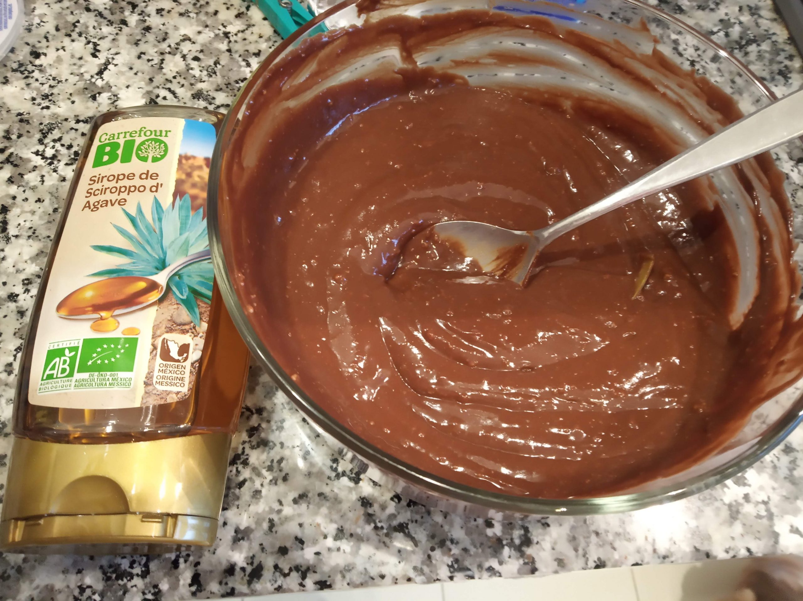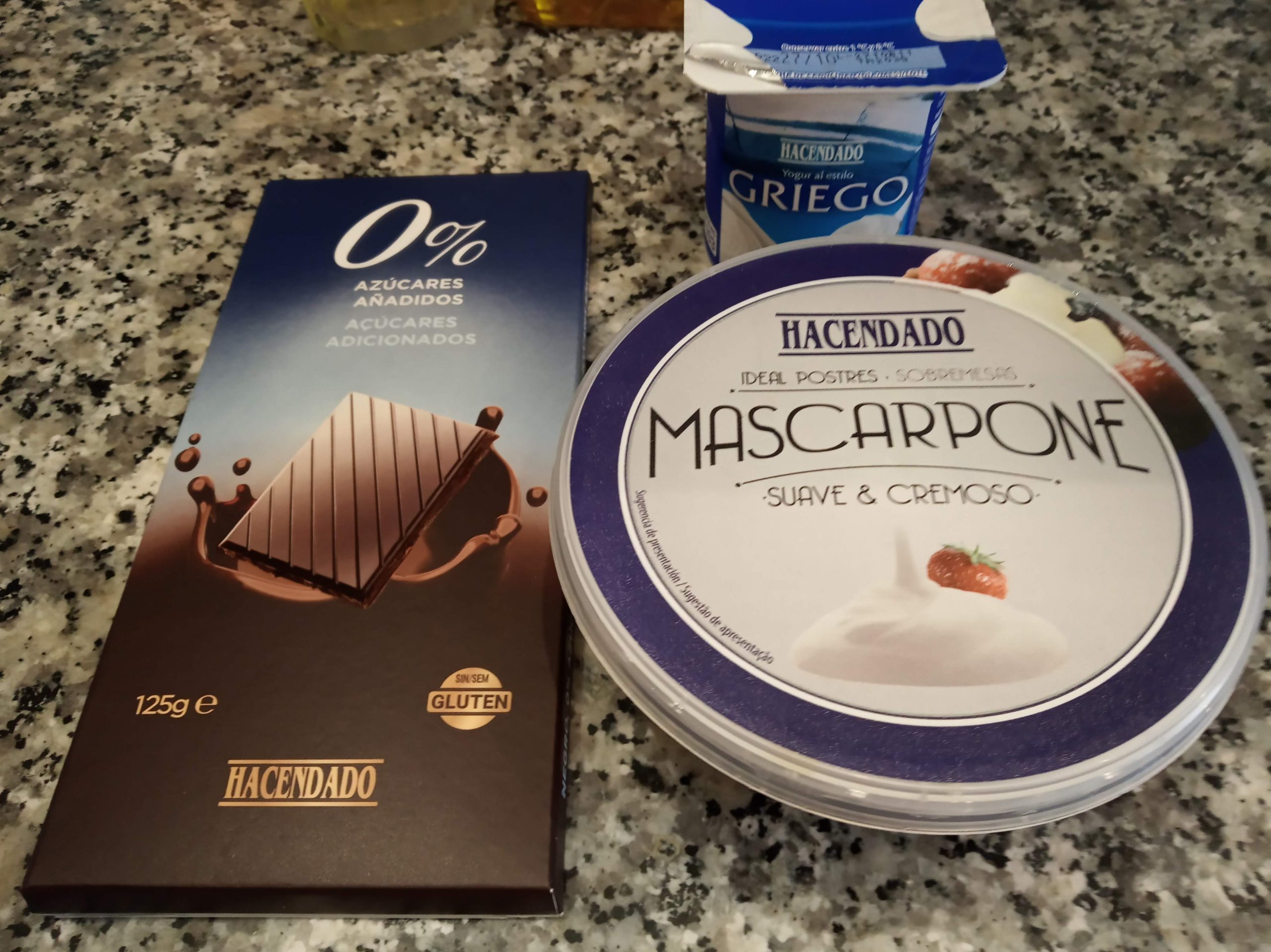 En un bol de cristal, echamos el yogur, el chocolate troceado, el queso mascarpone y la miel o sirope de agave.