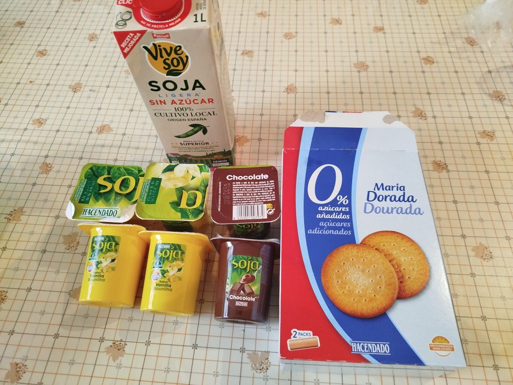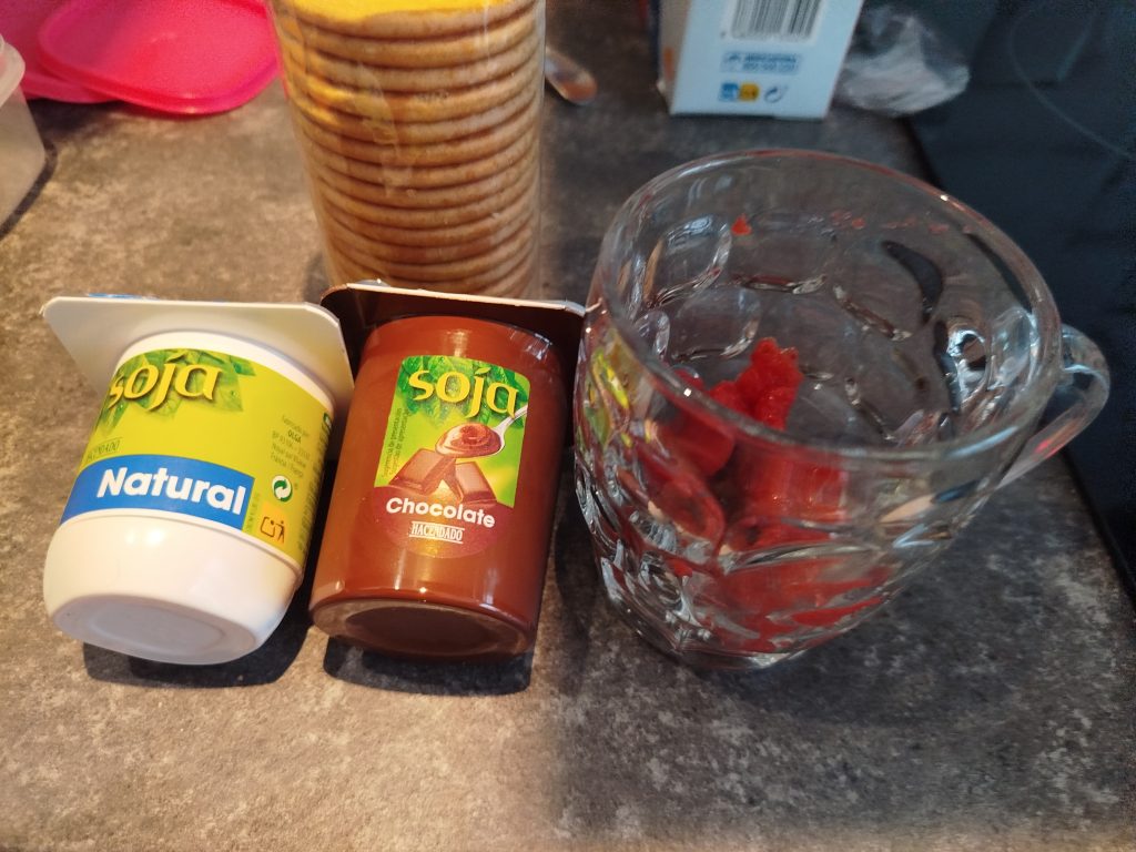 - 1 poco de leche o bebida de soja, para mojar galletas
