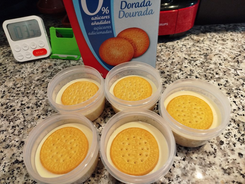 Repartir, en táper para un postre casero, y si es para un día especial, lo puedes presentar, en copas, vasos o cuencos, adornado por encima con una galleta entera, o troceada.