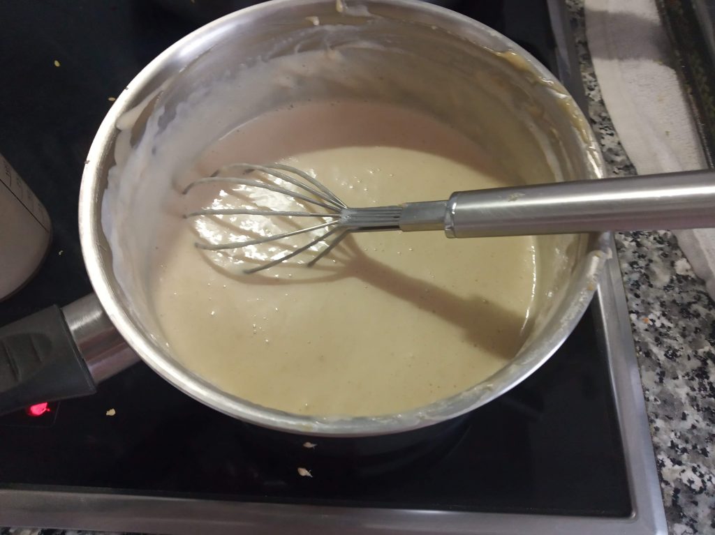 Volver a poner otra vez a calentar y cuando empiece a hervir añadir la leche con la cuajada.