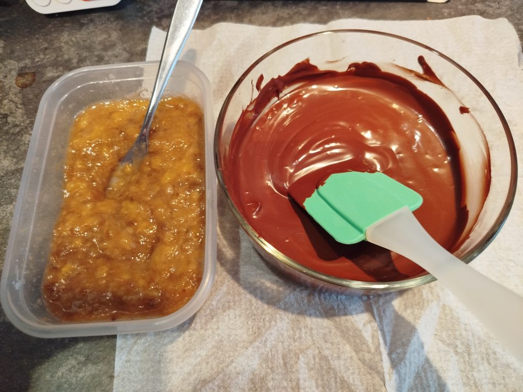 📜📷Realizada el 01/12/2024 con 3 plátanos maduritos y 200 g de chocolate valor postres cero azúcar.
