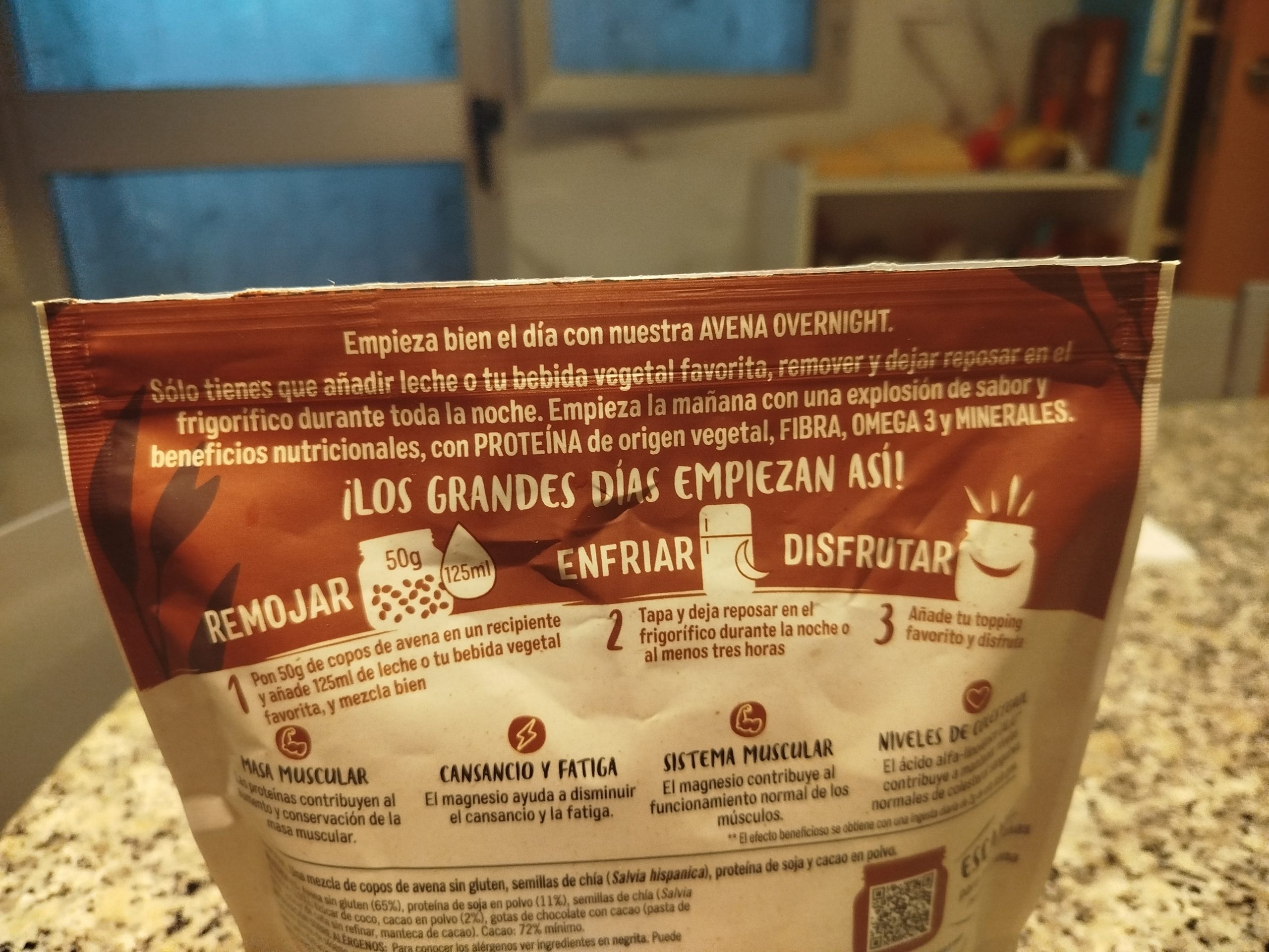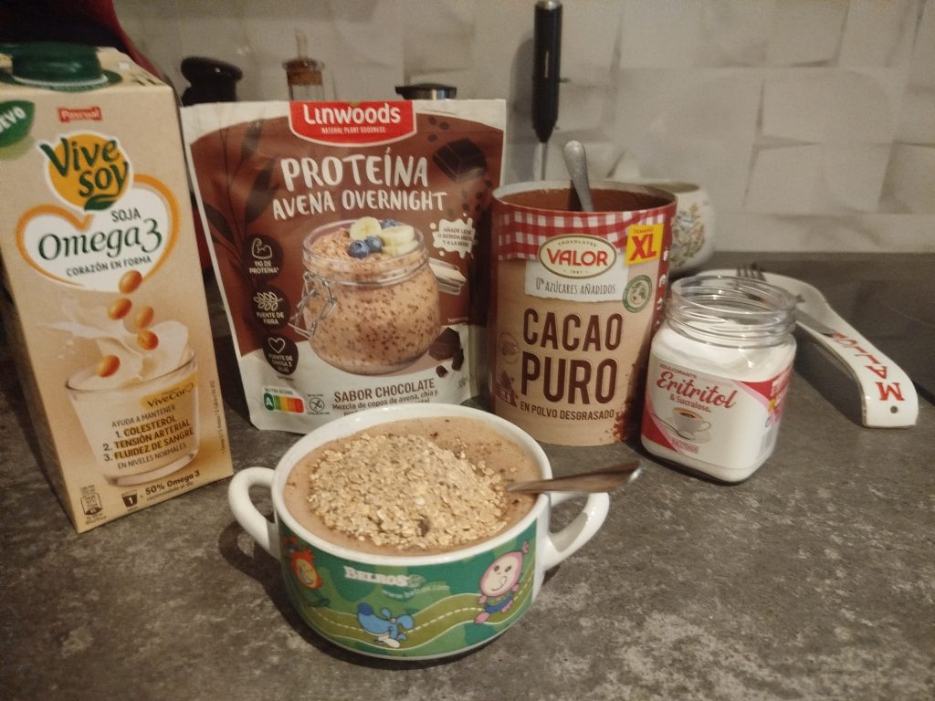 - 50 g de proteína de avena sabor chocolate o a tu gusto