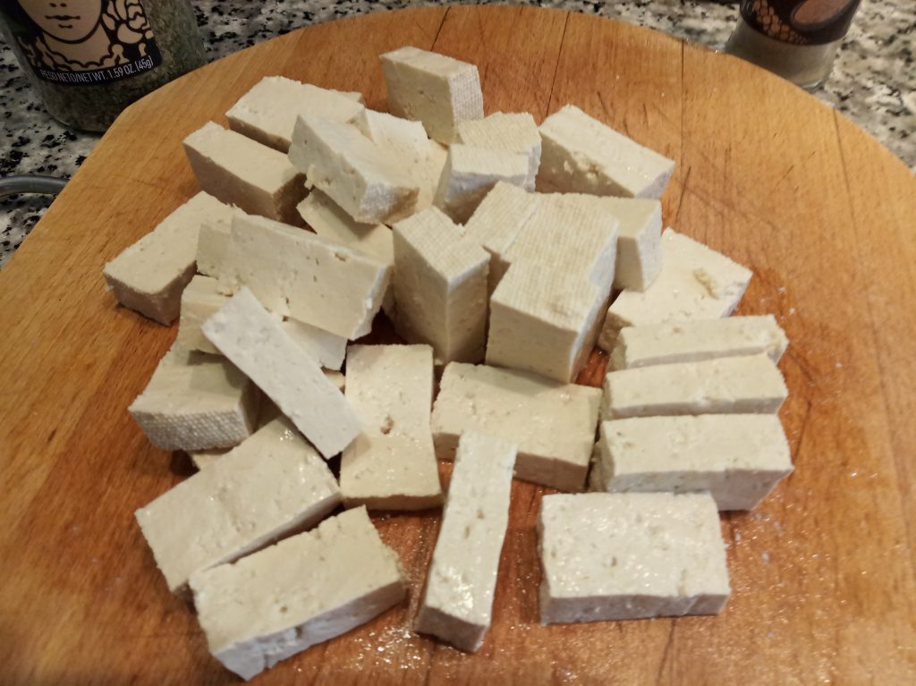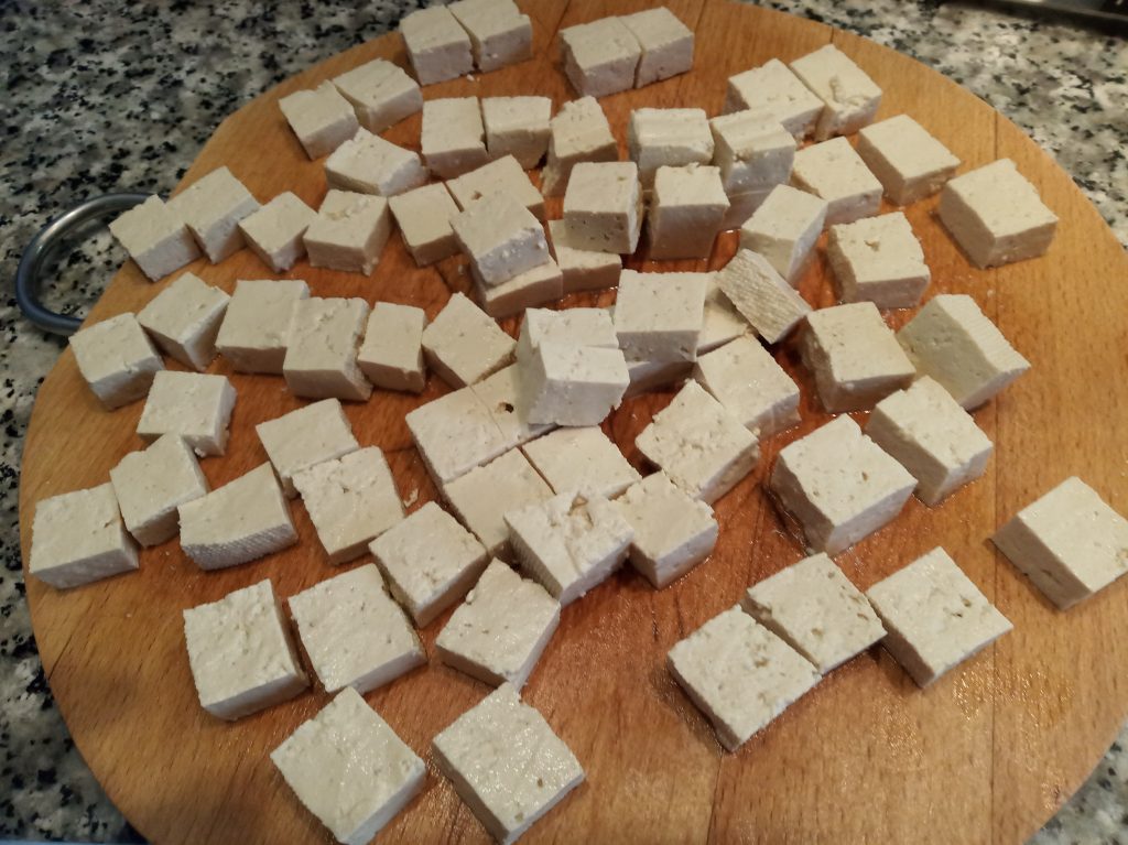 Trocear el Tofu, en trozos a tu gusto.