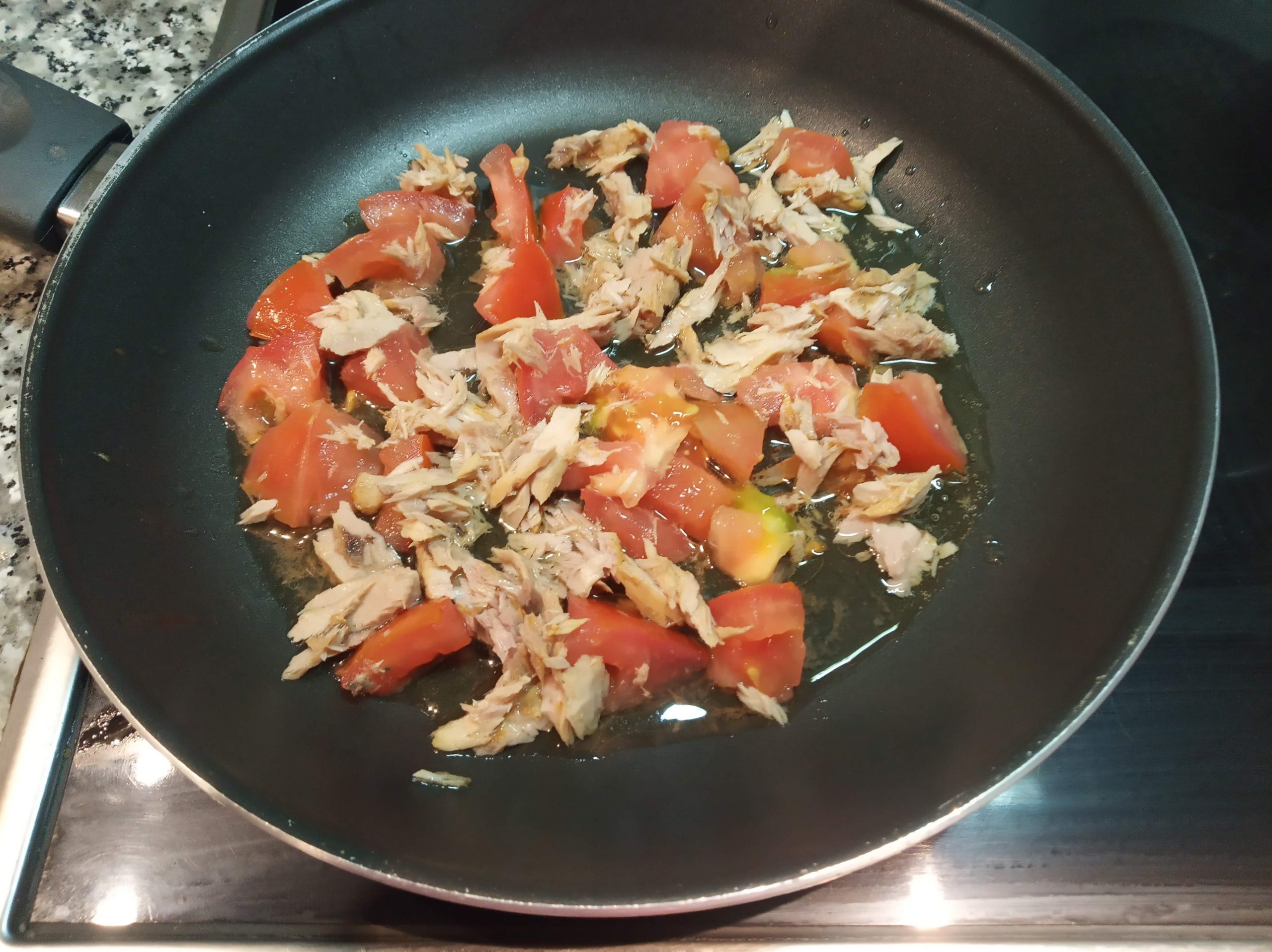 Troceamos más el tomate y desmenuzamos bien la melva.