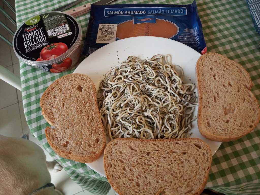 A la hora de comer, echamos las Anguriñas, en un plato llano, la extendemos y le echamos un poco de sal, ajo, perejil y aceite, y calentar un poco al microondas, o a la sartén si no tenéis.