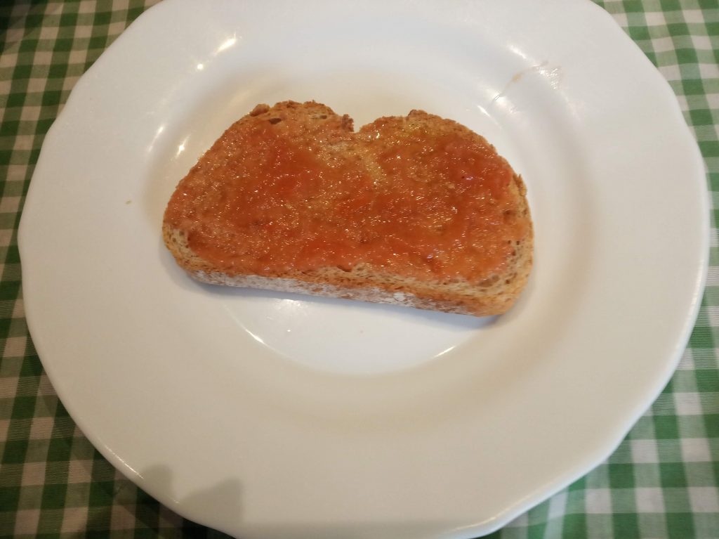 Cada uno se prepara la tosta, poniendo primero un poco de aceite, encima el tomate rallado, luego las Anguriñas y por último el salmón ahumado con un poco de eneldo picado por encima.