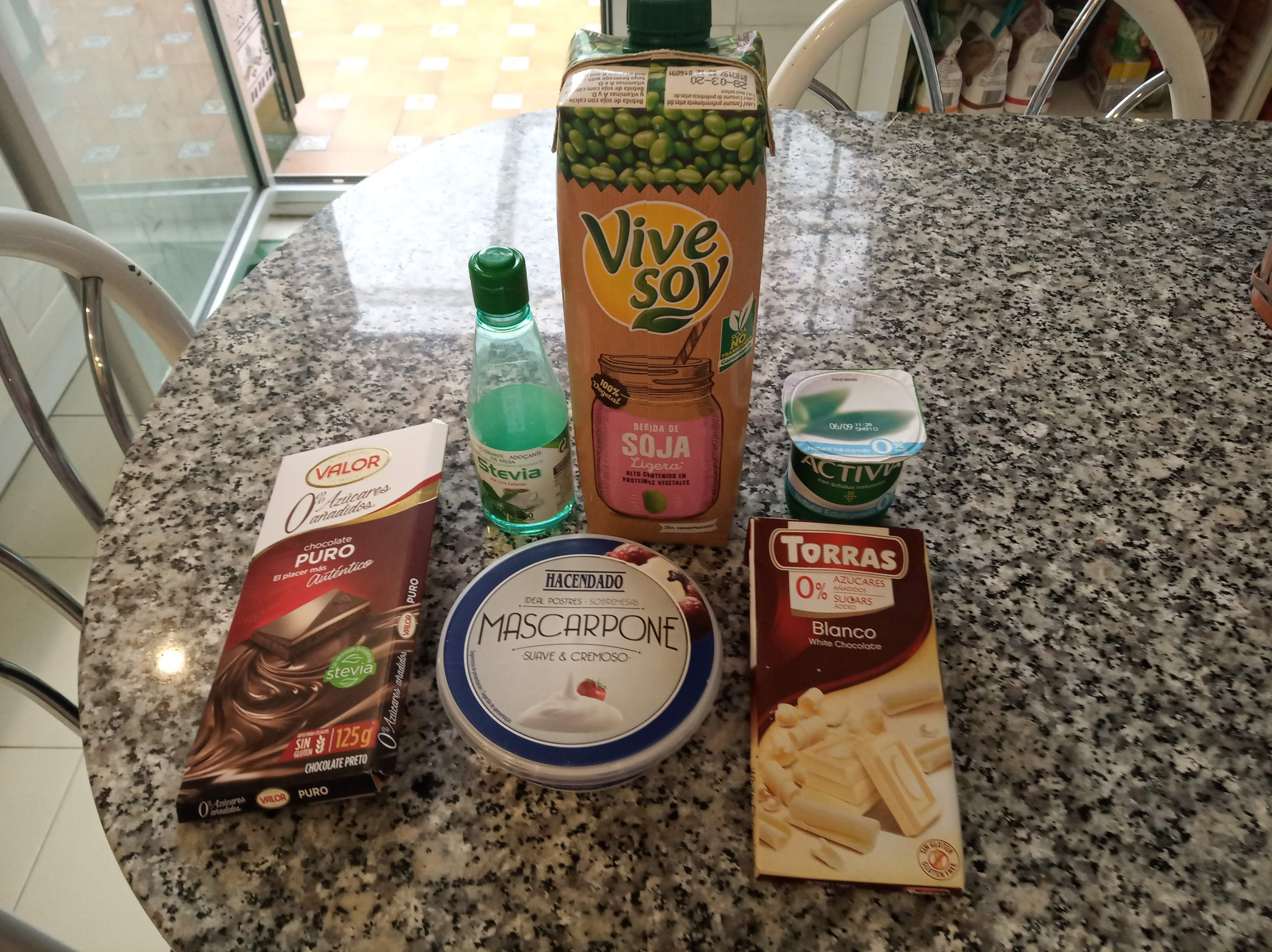 Derrite el chocolate negro en un cazo y mézclalo bien con el azúcar, retirar del calor y añade 5 cucharadas de mascarpone, mezclar bien.